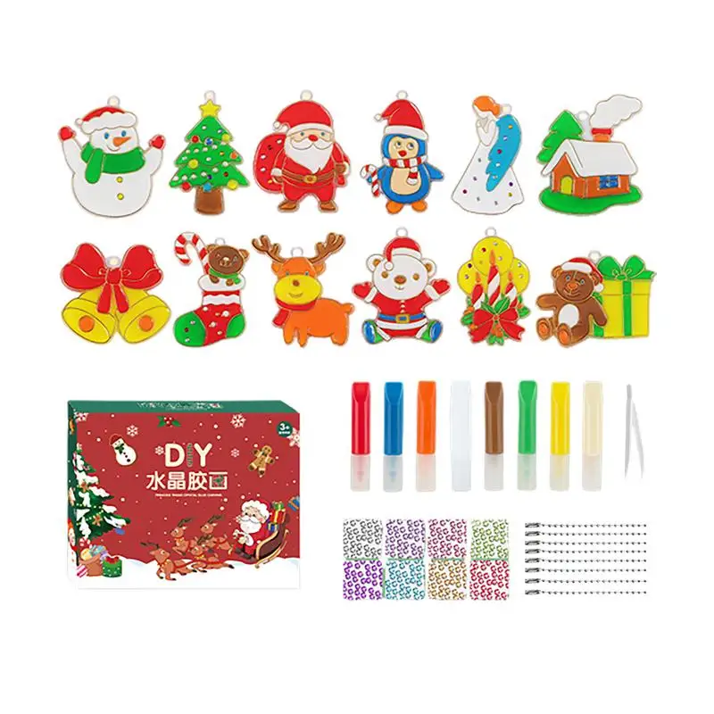 Diy crystal paint arts set*1(Pendant*12, glue pen*8, tweezers*1, 8 color beads*1 pack, suspending chain*8)
