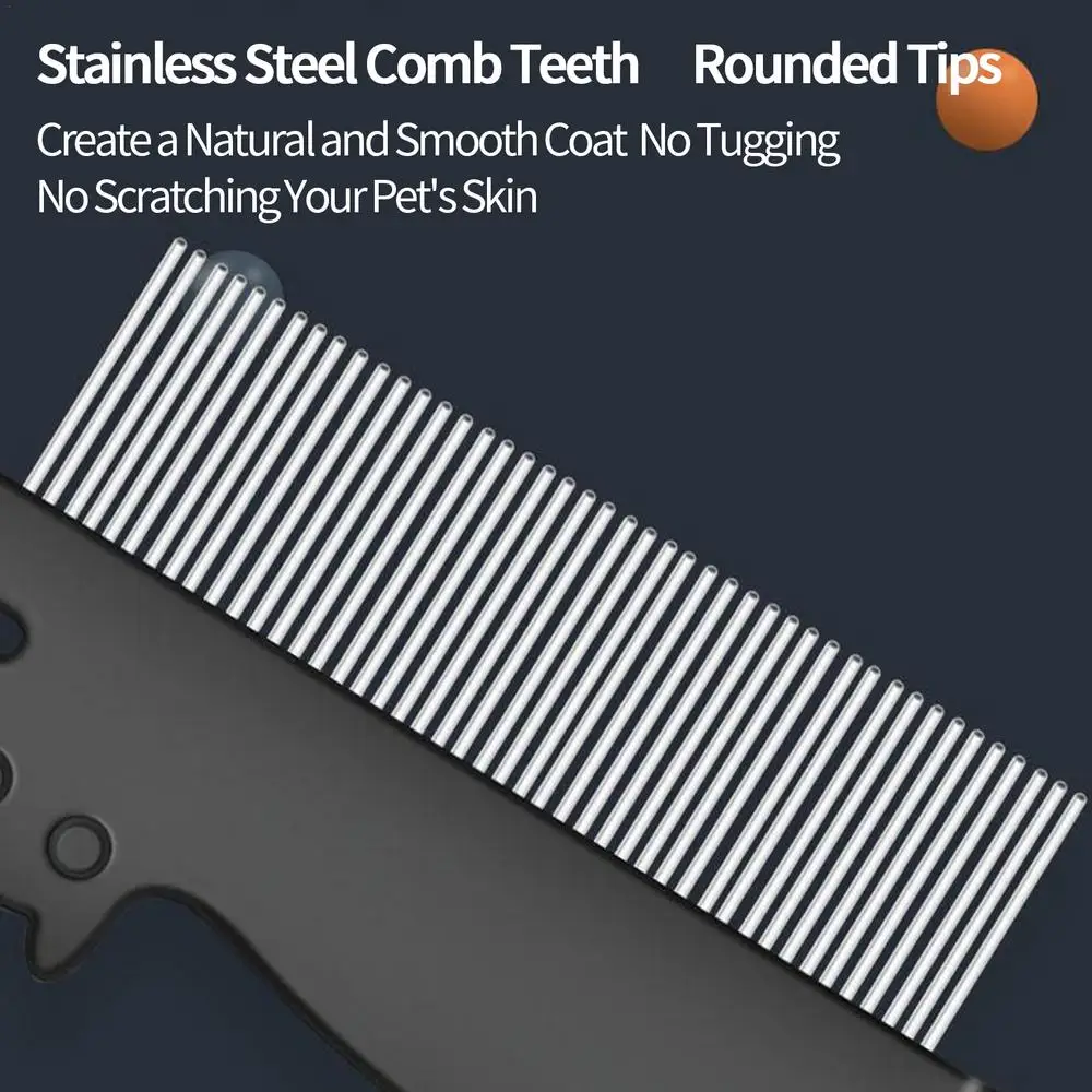 1. The stainless steel Pet Comb has rounded tips, it can create a natural and smooth coat, will not pull hair and scratch your pet’s skin.