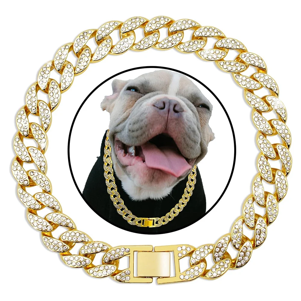 Dog Cuban Gold Chain Luxury Diamond Dog Collar Pet Metal Necklace Jewelry Accessories for Small Medium Large Dogs Cats Pet Gift