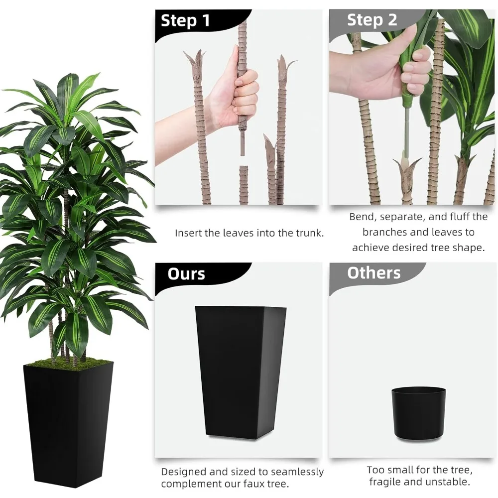 • 👍Proportional and Quality Planter: Our planter has been meticulously designed and sized to seamlessly complement our fake dracaena tree, offering a perfect balance of aesthetics and functionality. Additionally, products that include all the essential components: a fake tree, a planter and artificial moss, eliminating the need for extra purchases and saving customers time and effort.