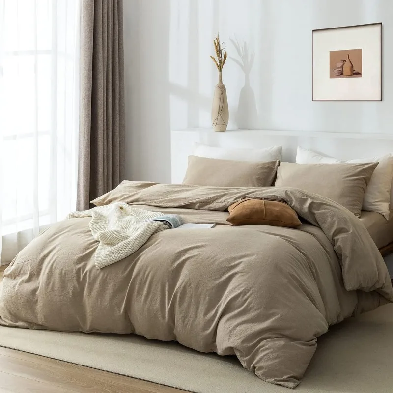 - PERFECT HOME DECORATION: TIPTOE EBAR beige duvet cover set boast a more natural wrinkles rustic look, pretty and practical that enhances the look and feel of your bedroom while ensuring you stay cool and comfy through the night.