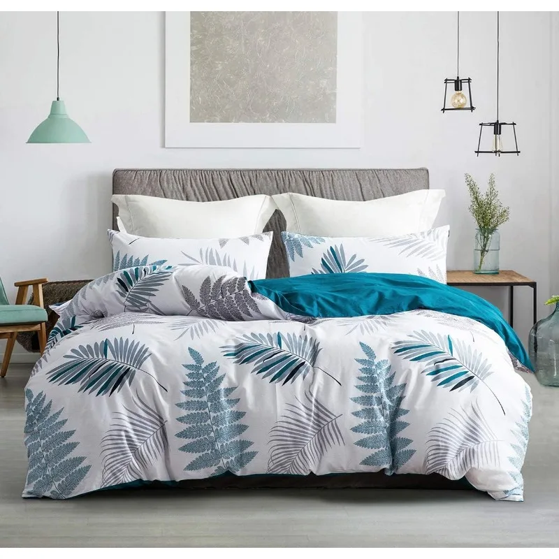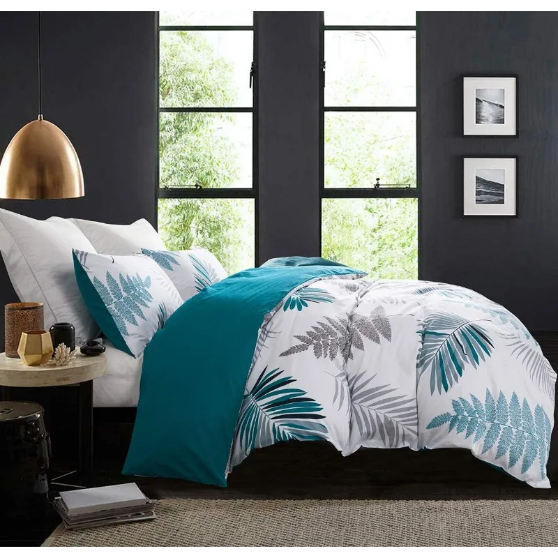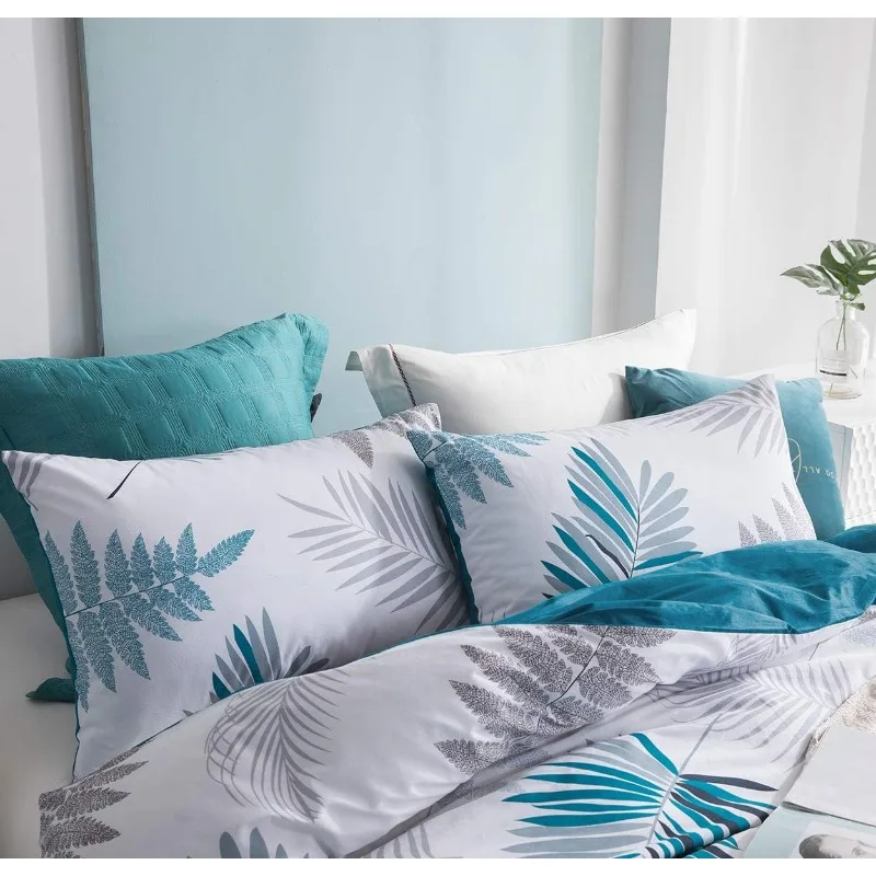 - ★REVERSIBLE DESIGN – Elegant leaf pattern and teal blue shade color, you can change the pattern of the front and back of the duvet cover by mood. A color, a mood