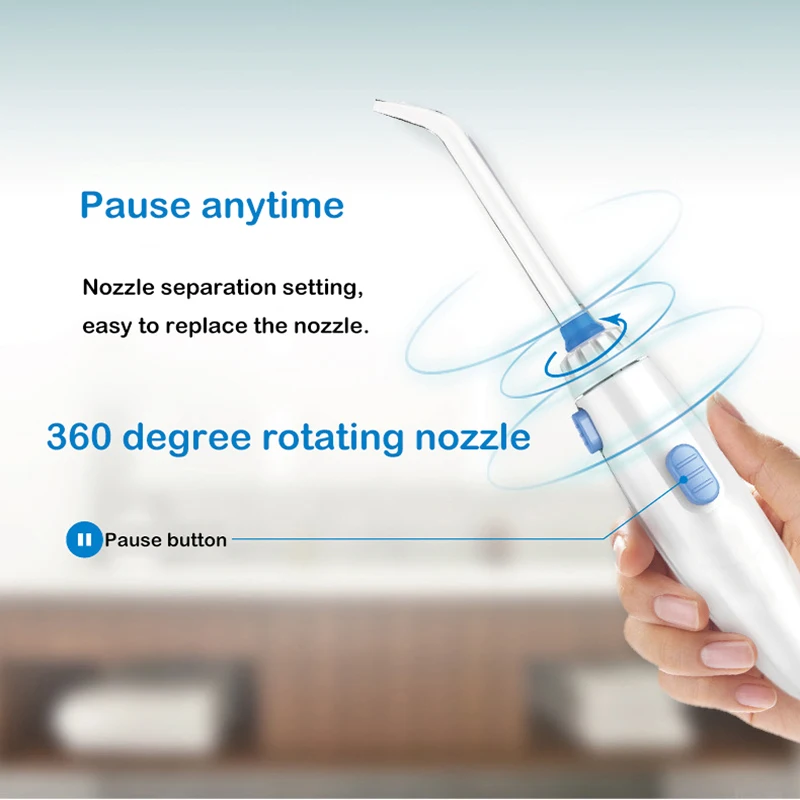 A:To maintain good oral health, we recommends that you floss at least once per day and brush your teeth at least twice per day. And remember water flosseris not a substitute for a toothbrush, usingtoothbrushtogetherwith water flosser will get better effect.