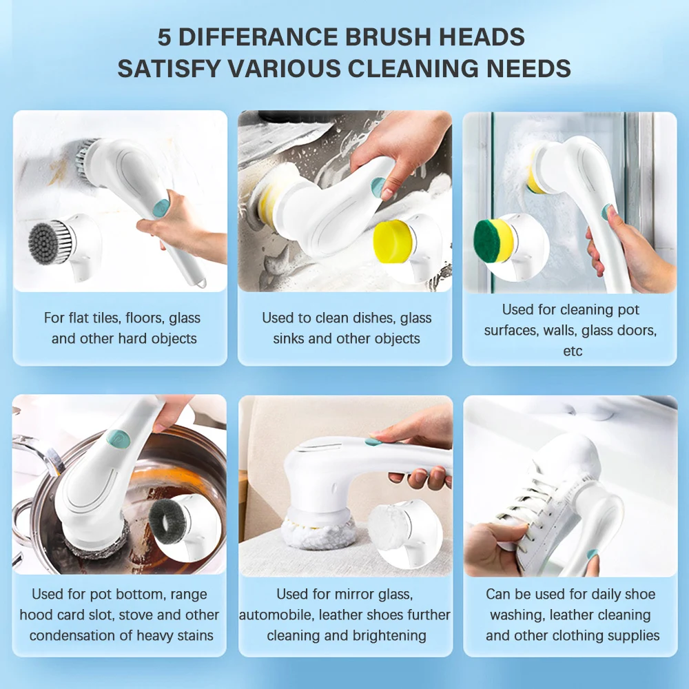 5 in 1 Multifunctional Cleaning Brush: Comes with 5 different brush heads which can perfectly solve various problems of dirt in the kitchen, bathroom, window, etc.