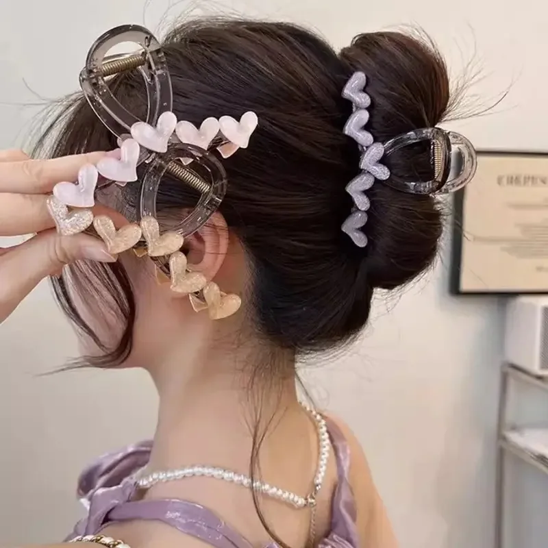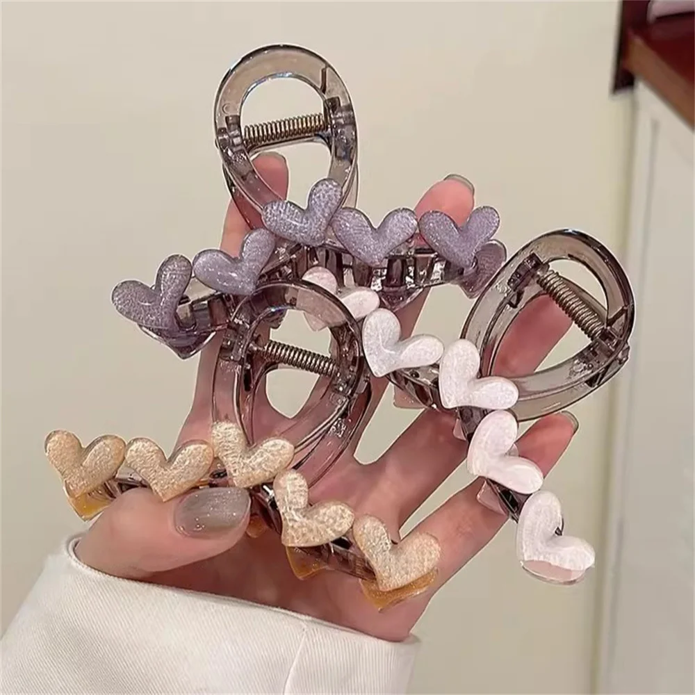 Elegant Jelly Heart Hair Claw Clip Acrylic Non Slip Strong Shark Hair Jaw Grab For Women Girls Summer Headdress Accessories