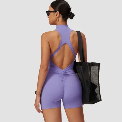 Sporty Jumpsuit with Bar Women 2024 Fitness Gym Running Push Up Short Set Sportswear Yoga Clothing Workout Clothes Gray White