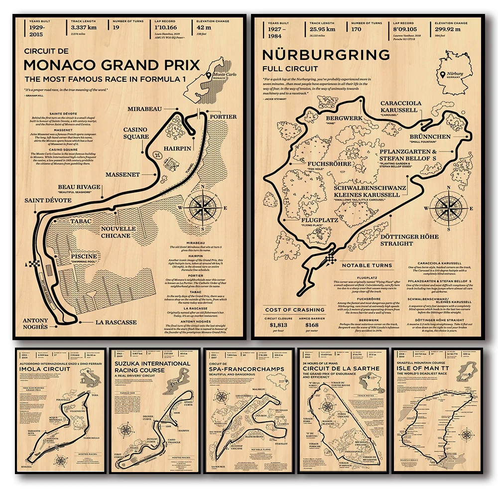 Home Store Home Decor Wall art F1 Formula Racer Poster Aesthetics Racing Monaco Grand Prix Circuit Track Wall Art Mural Home Room Decor Vintage Canvas Painting