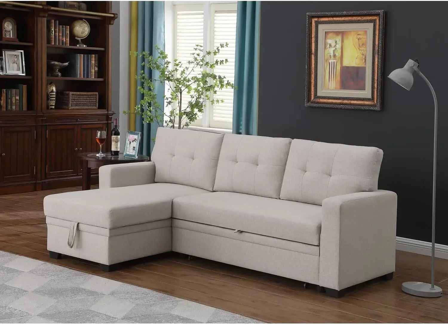 - Sofa & Chaise; Leg Color Black; Sleeper Size Twin