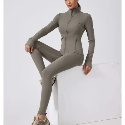 Lemon Define Jacket+Leggings Suit Training Running Gym Yoga Zipper Jacket High Quality Standing Collar Tight-fitting Sportswear $157.17
