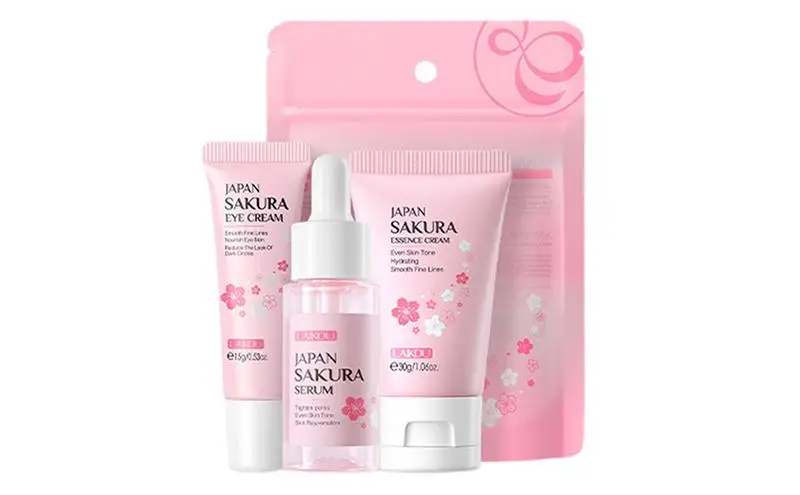 3.Prevent Dryness: Achieve deep skin nourishment with a Sakura Skincare Set. Its natural ingredients lock moisture to prevent dryness and dehydration, leaving your skin moisturized, soft, and smooth. Regular use ensures a long-lasting youthful glow. Experience the charm today.