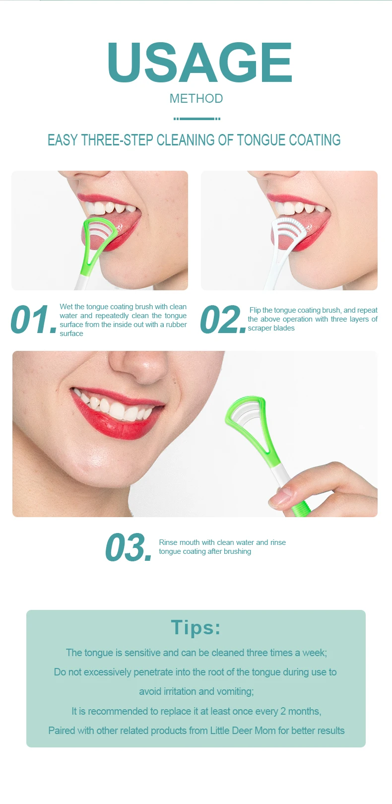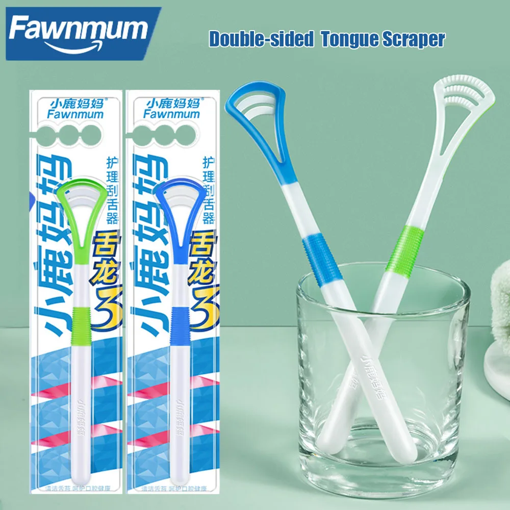 Fawnmum Double-sided Tongue Cleaning Brush For Adult Fresh Breath Tongue Scraper Silicone Tongue Cleaner Oral Care Tool 5 Colors