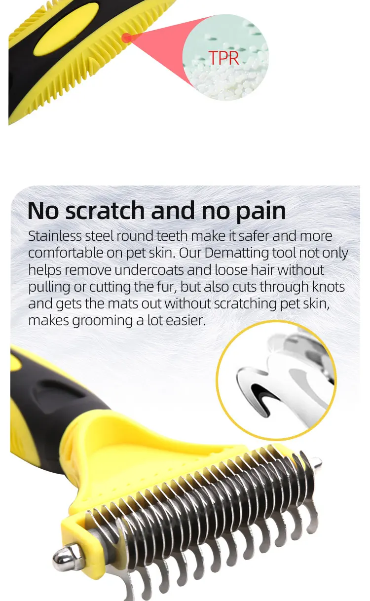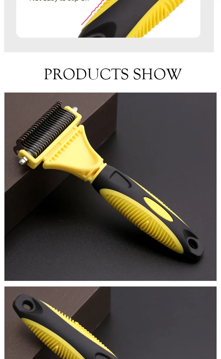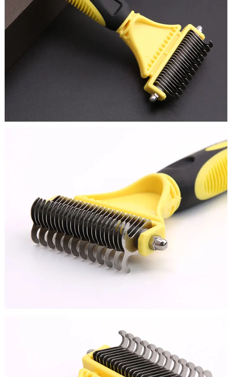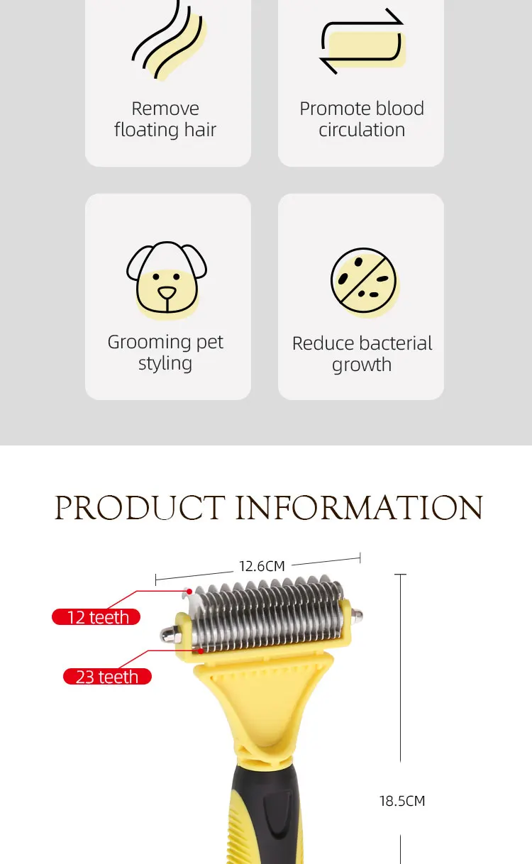 Hign-concerned Chemical: None Model Number: Dog comb brush Material: STAINLESS STEEL Origin: Mainland China Type: Dogs Features:1,120°Brush Head and 135°Pins: Elongated flexible 135°steel pins penetrate