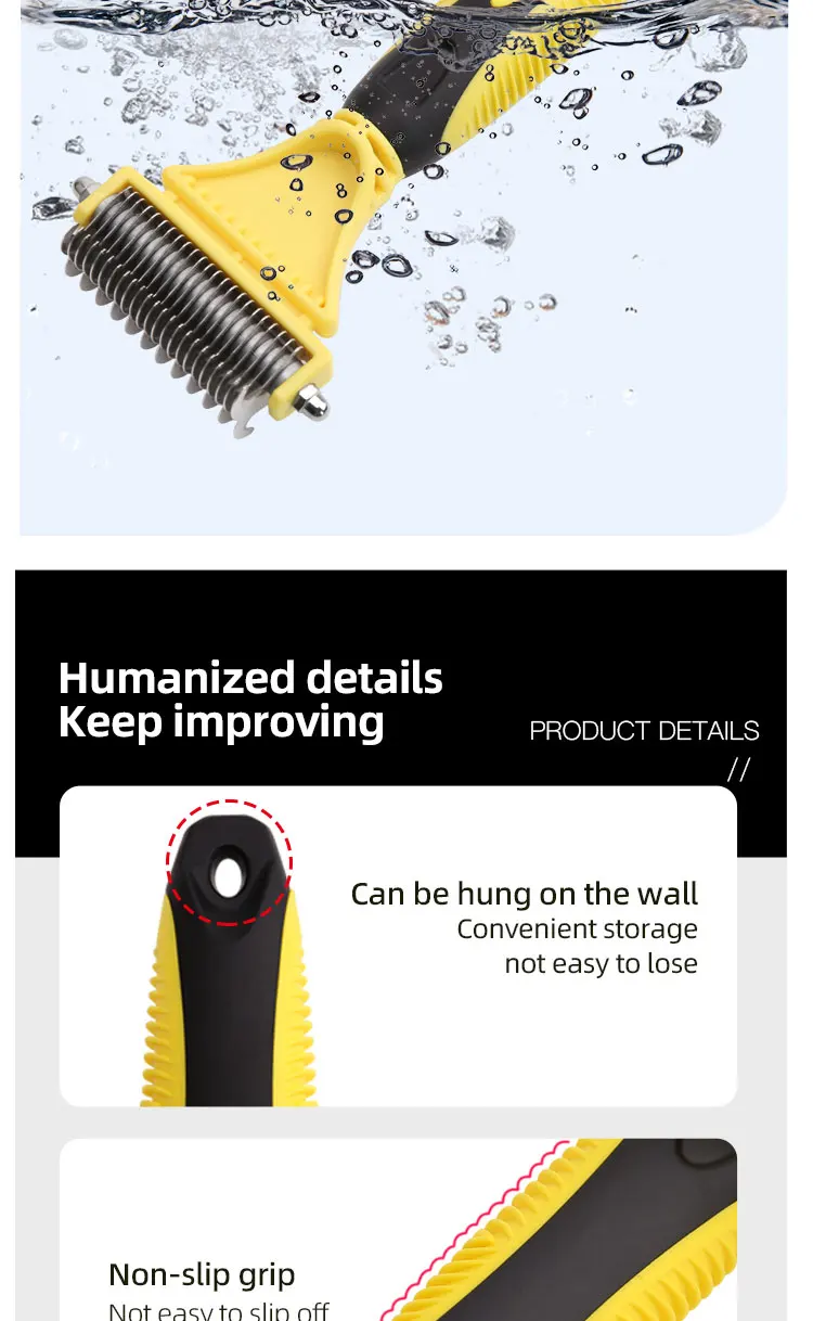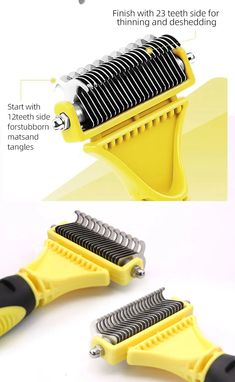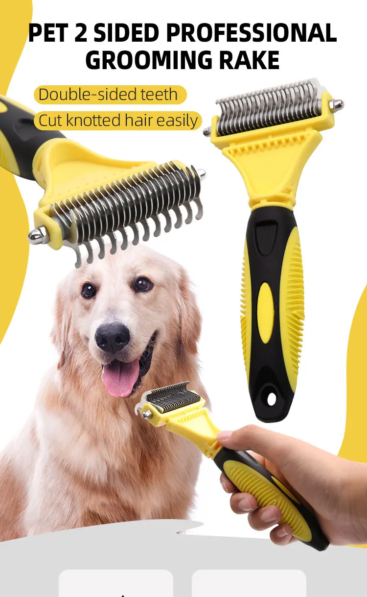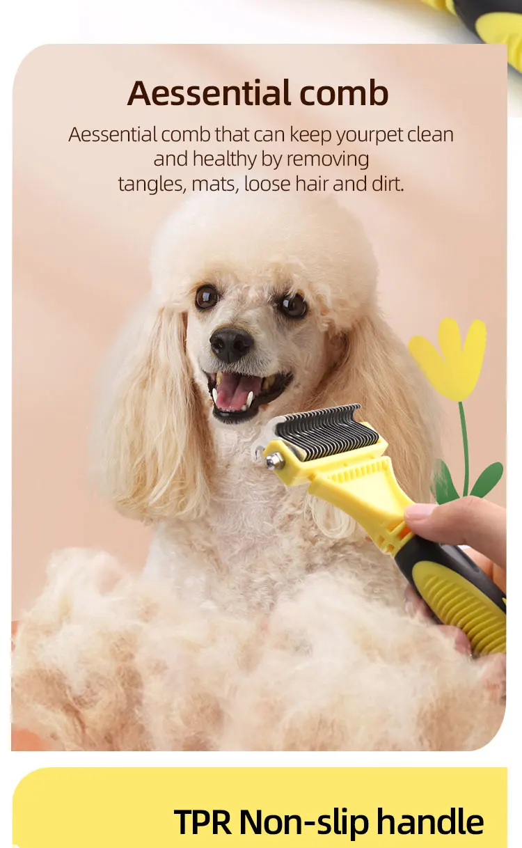 Hign-concerned Chemical: None Model Number: Dog comb brush Material: STAINLESS STEEL Origin: Mainland China Type: Dogs Features:1,120°Brush Head and 135°Pins: Elongated flexible 135°steel pins penetrate