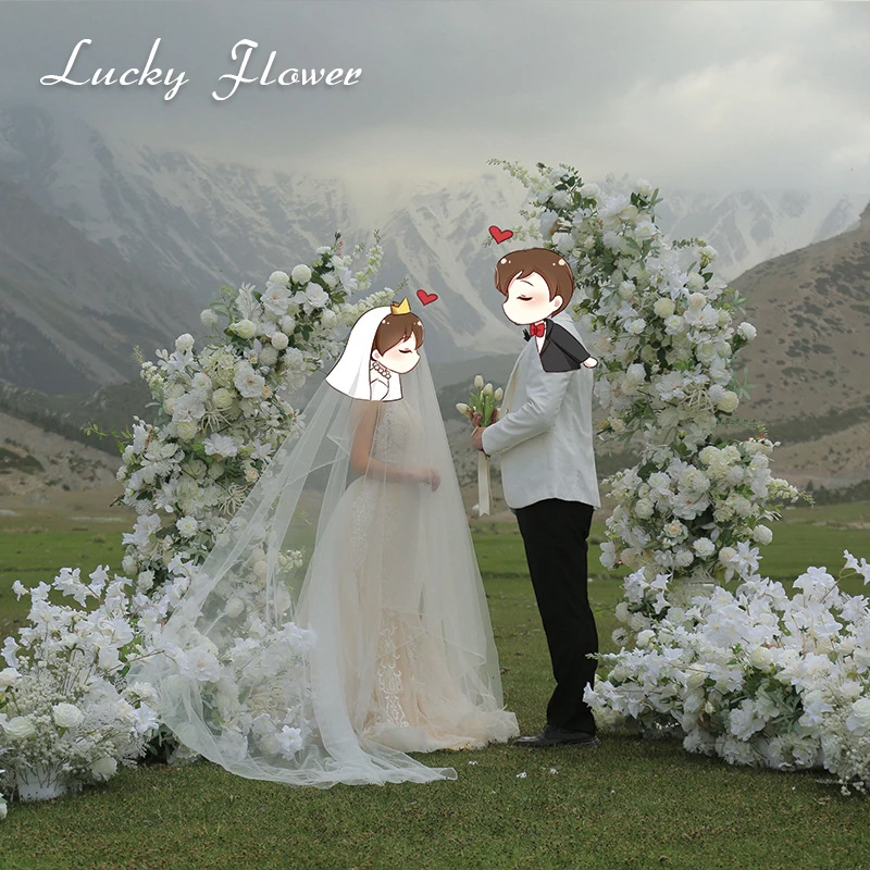 Floral Horn Arch Artificial Flowers For Wedding Decoration Flower Backdrop Runner Flower Row Table Decor Flower Ball Centerpiece