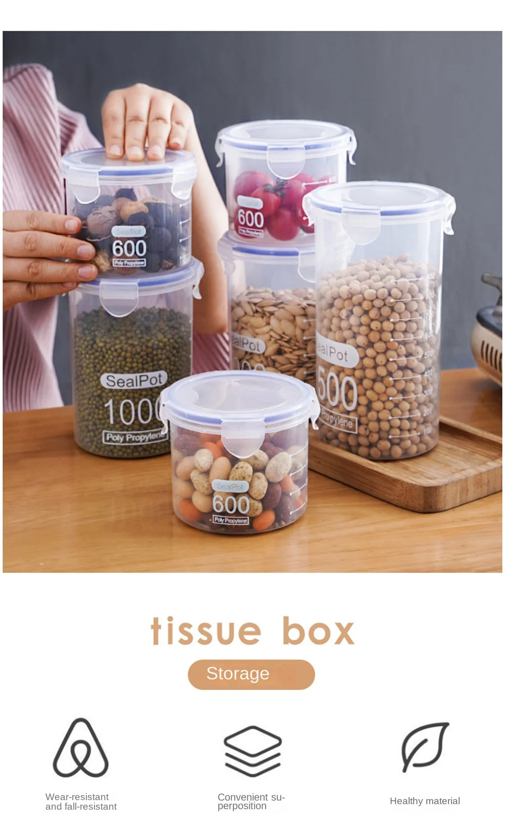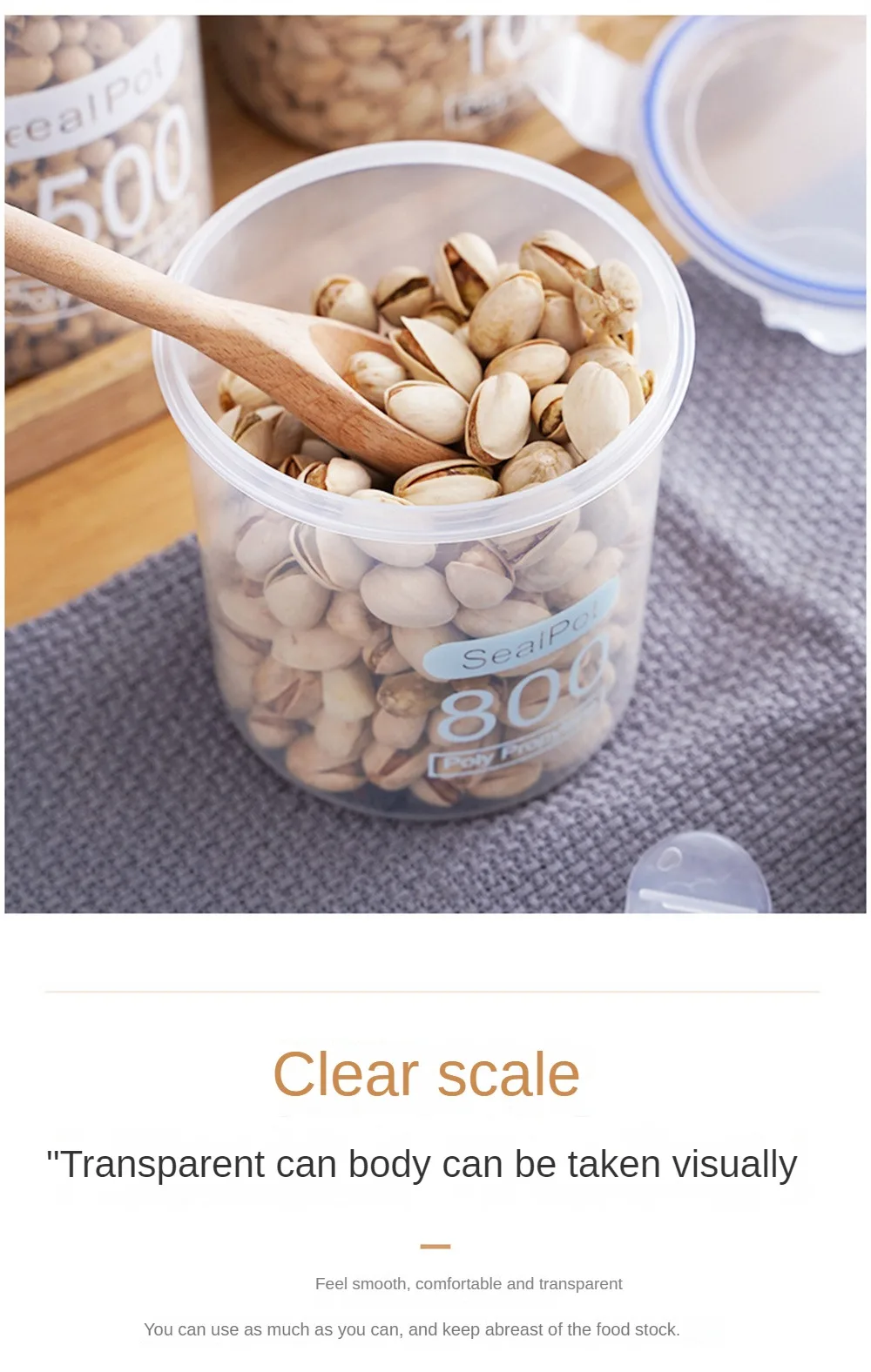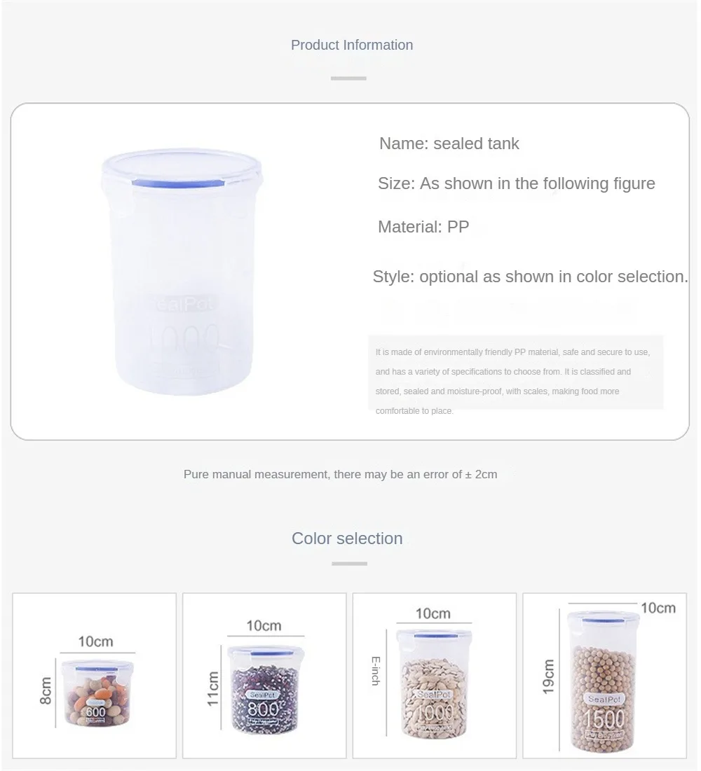 1. It is made of environment-friendly material, which is safe and reliable to use. There are a variety of specifications to choose from. It is stored by classification, sealed and moisture-proof, and has a scale, which makes food placement more comfortable.