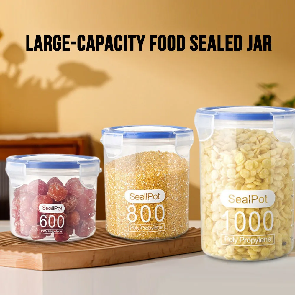 Home Store Household Essentials Kitchen items Food Storage Box Sealed Plastic Cereal Candy Dried Jars With Lid Fridge Storage Tank Containers Household Item Kitchen Organizer
