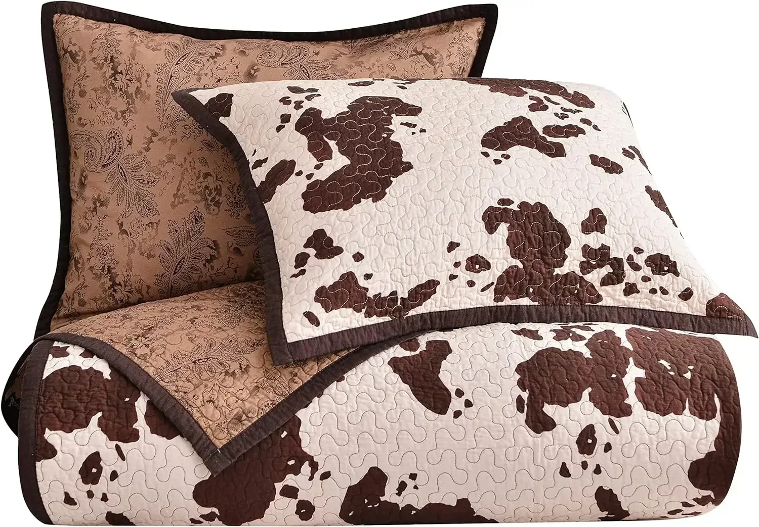 Elsa 3 Piece Quilt Set Elsa 3 Piece Quilt Set Cowhide Sheet Set, 350 Thread Count Cowhide Sheet Set, 350 Thread Count Elsa Sherpa Cow Print Blanket Elsa Quilted Valance
