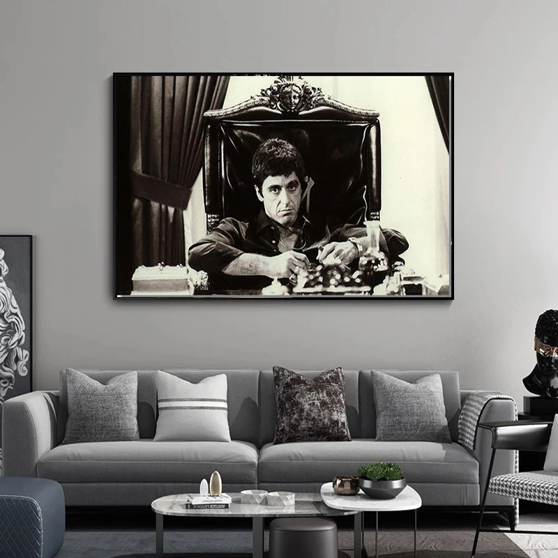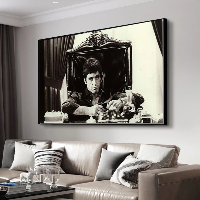 Home Store Home Decor Wall art Gangster Movies Scarface Posters and Prints Tony Montana Luxury Art Canvas Painitng Portrait Wall Art Pictures Living Room Decor