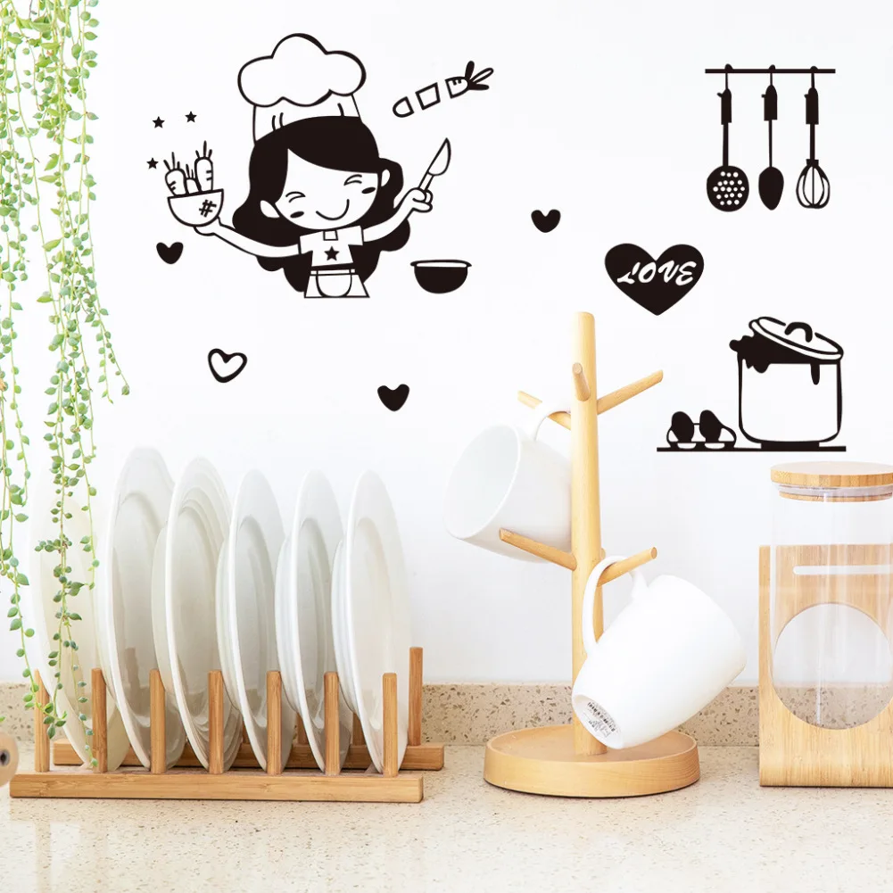 Home Store Home Decor Decorative items Girl Loves To Cook Print Waterproof Wall Stickers Home Interior Kitchen Decoration Wallpaper Household Decorative Ornaments