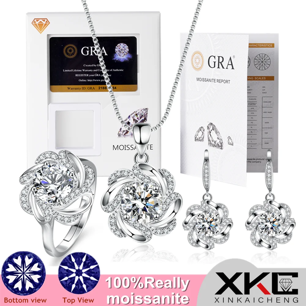Home Store Fashion & Accessories Jewelry Gra Mozambican stone one-carat ring pendant necklace earrings three-piece set of Lady’s baby’s breath jewelry