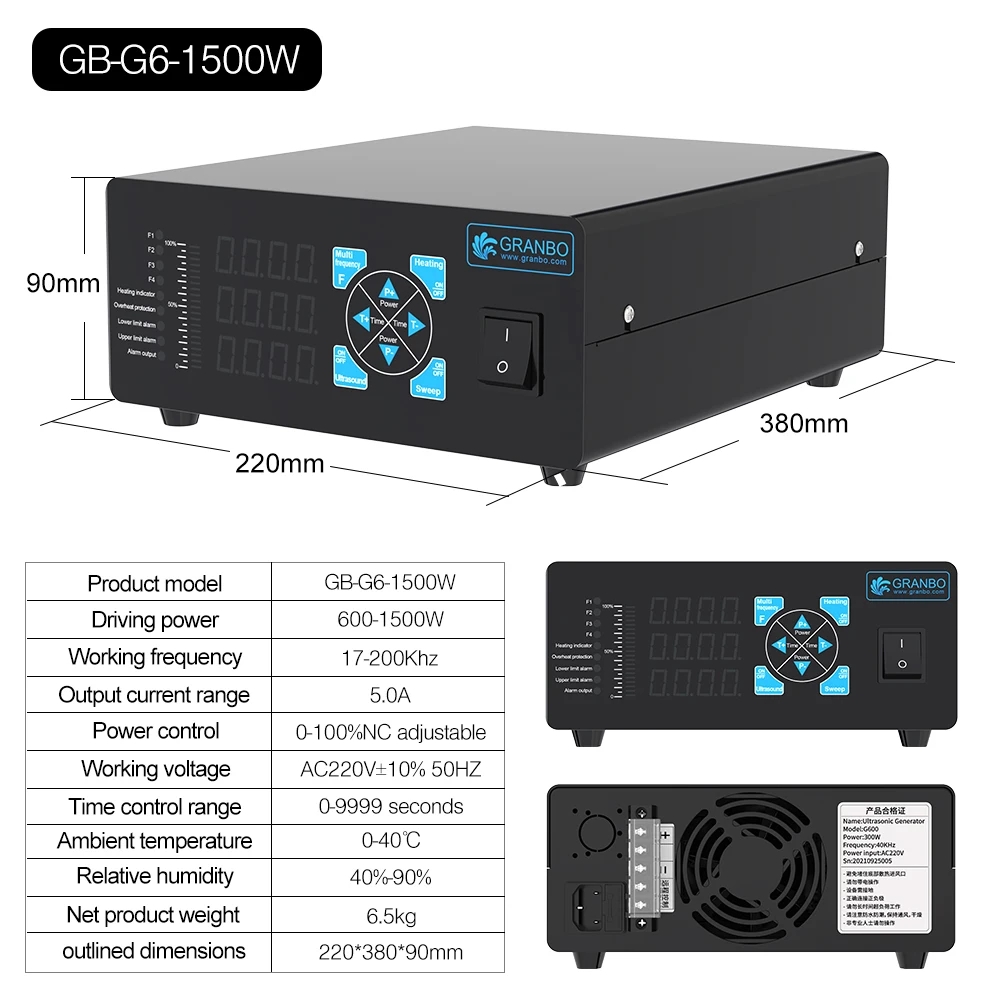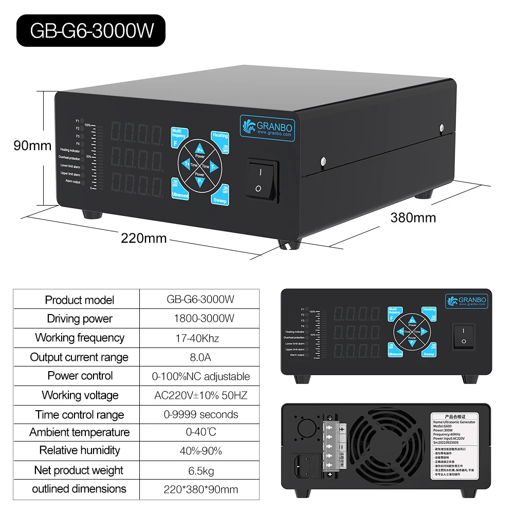 Granbosonic 600W~3000W Power Multi-Frequency Band Varible Wave Industrial Ultrasonic Generator for Car Lab Scientific Cleaning