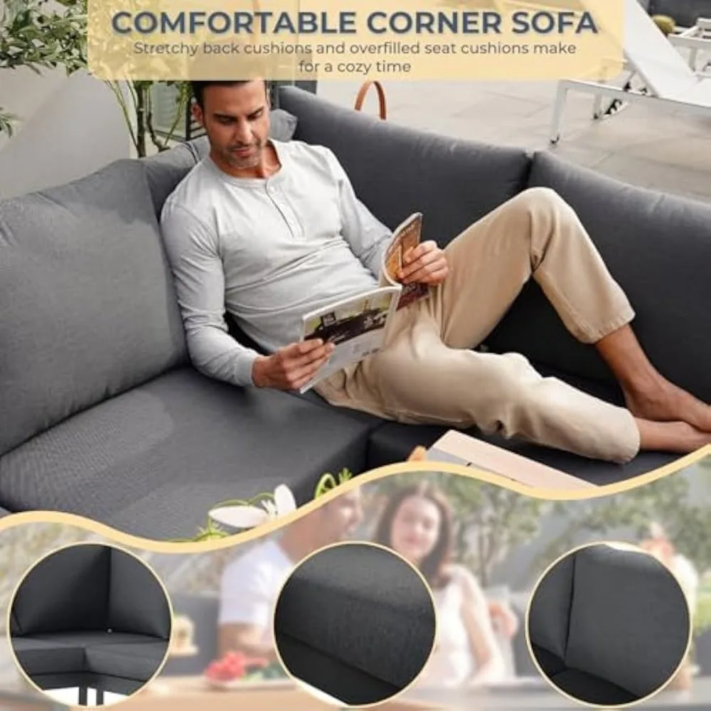 - Ample Space: Gather with friends or family on the comfy aluminum patio furniture set. You can set up snacks and drinks at the long coffee table and enjoy a relaxing time together. The sectional sofa set can also be used as a guest conversation set or party place