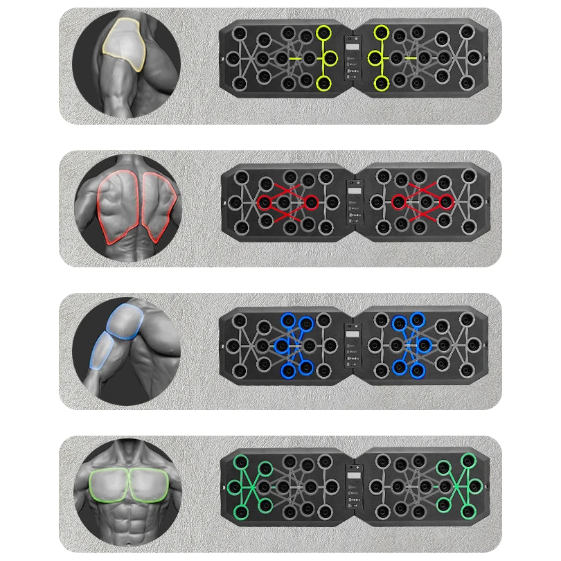 Enhance your fitness program with this versatile training device. The Wrist Ball Trainer LED Gyroscope starts automatically and produces up to 61 kg for muscle relaxation, suitable for a variety of sports such as tennis, cycling and rock climbing. The portable push-up board comes with color-coded handles that target specific muscle groups to ensure an effective workout and avoid a workout plateau. The board is also equipped with resistance bands for more practice and non-slip stickers to ensure stability. In addition, the Abdominal Wheel strengthens muscles through its non-slip design and silent operation, providing a durable and versatile fitness tool suitable for home or gym use. Get ready to upgrade your fitness program with these innovative and effective fitness essentials.