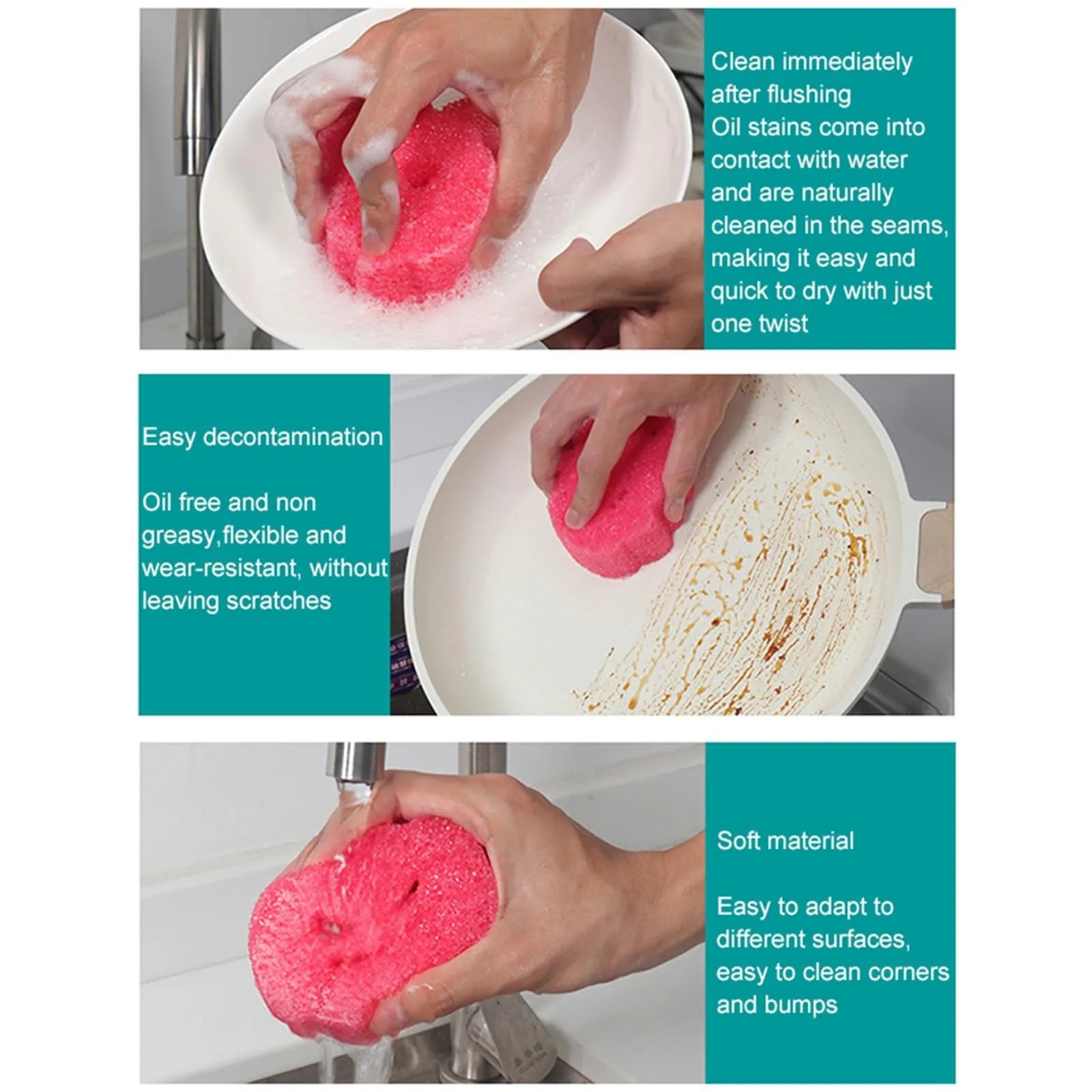 Temperature Sensitive Design: The dish sponges for washing dishes feature a temperature sensitive design, they are firm in cold water, suitable for strong scrubbing, and soft in warm water, suitable for mild cleaning.