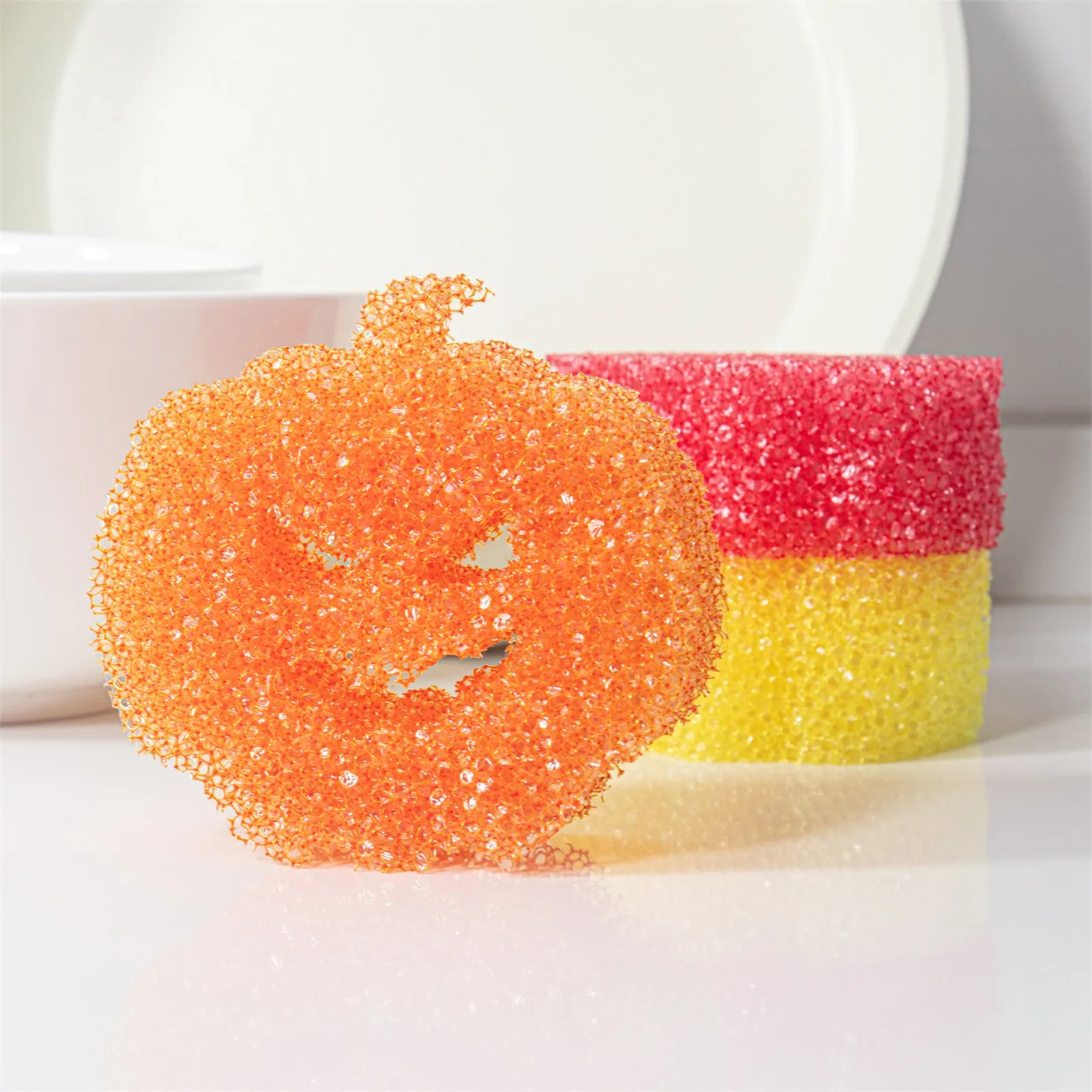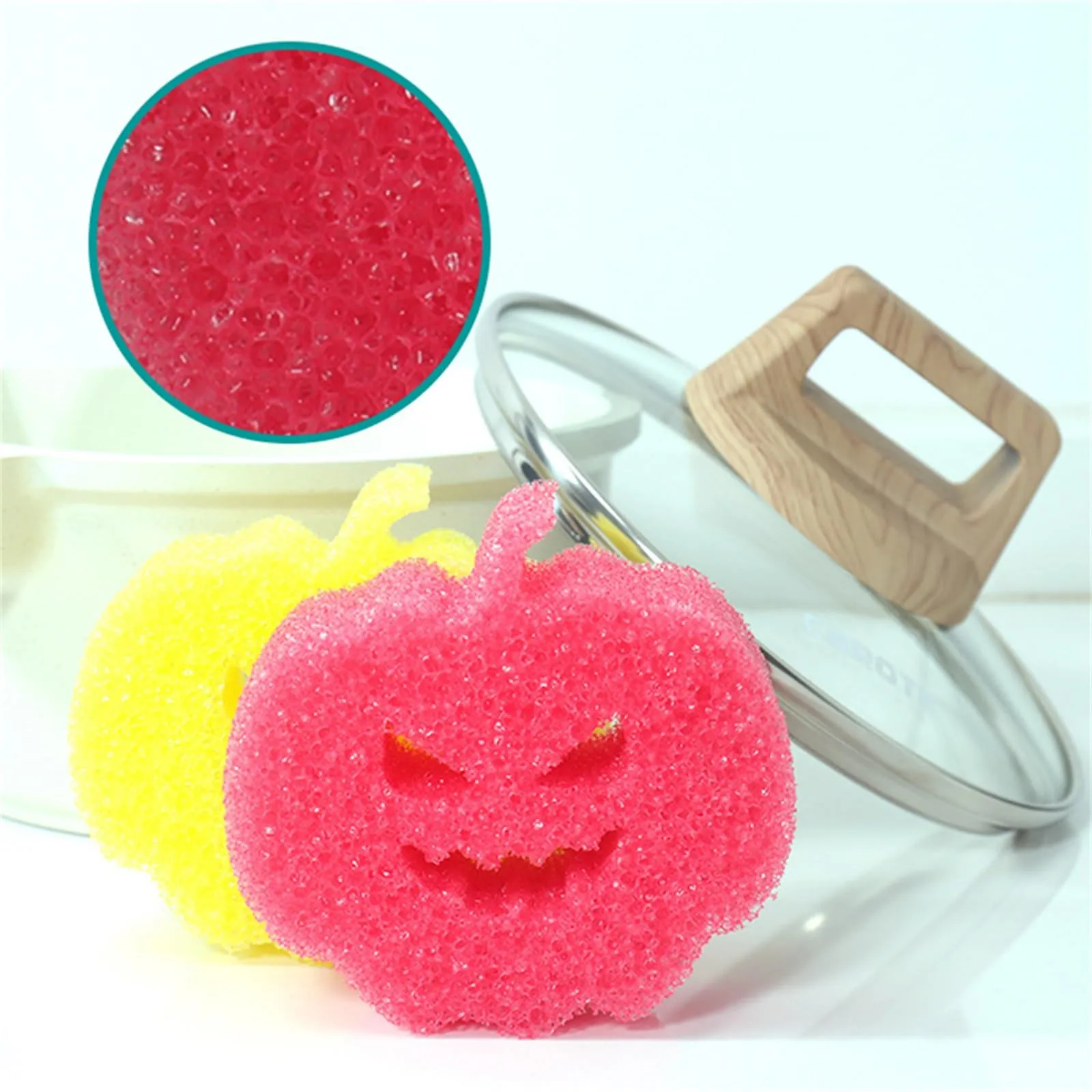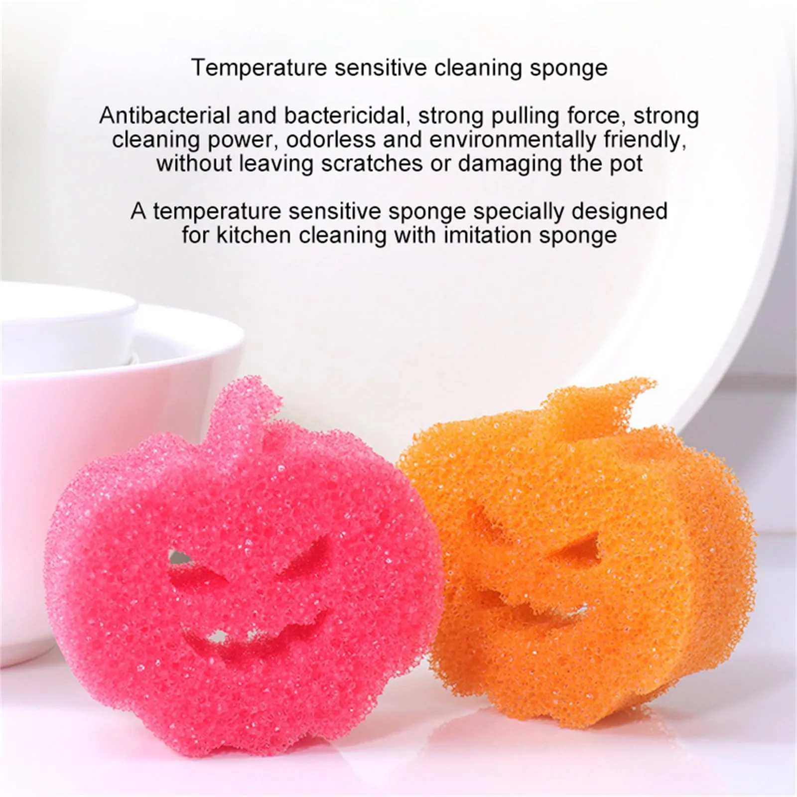 Halloween Cleaning Sponges Pumpkins Temperature Sensitive Non Scratch Household Cleaning Sponges For Dish Pots & Pans (Red, 10cm*9.5cm*4cm)