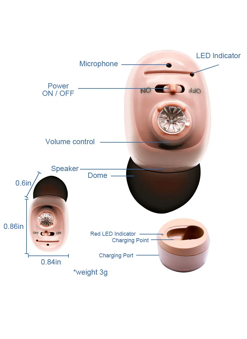 • Mini invisible hearing aid: Rechargeable hearing aids