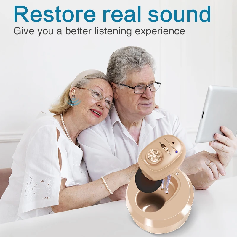 Rechargeable Hearing Aid Mini Invisible Digital Sound Amplifier for Deafness Elderly Wireless Aids Mild to Moderate Hearing Loss Audifonos