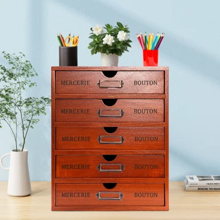 5-Drawer Wooden Desk Organizer, Vintage Shelf Drawer, Office Desk Computer Pad Organizing Storage Cabinet Storage Boxes