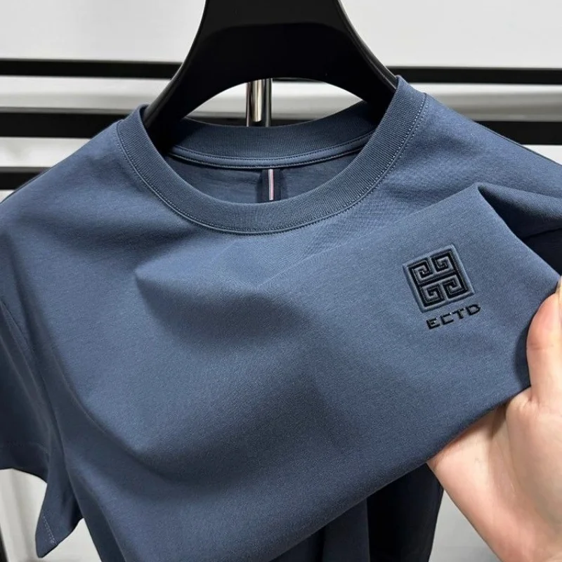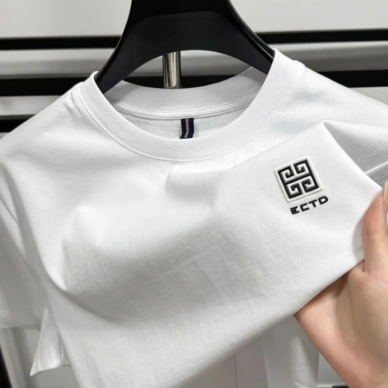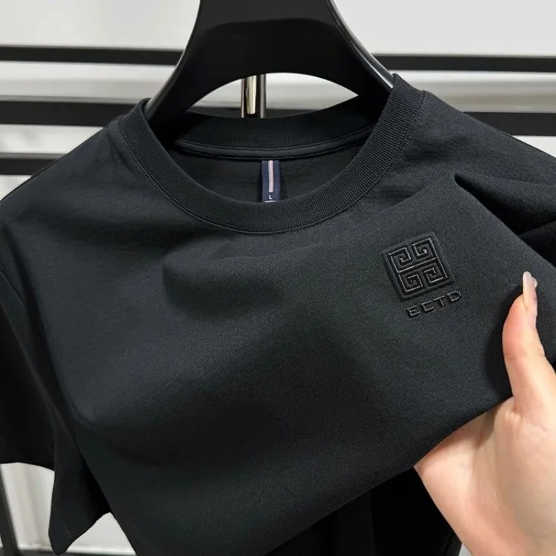 High end Brand 100% Cotton T-shirt 2024 Summer New Fashion Round Neck Short sleeve Chinese Designer Design Trendy Men’s clothing