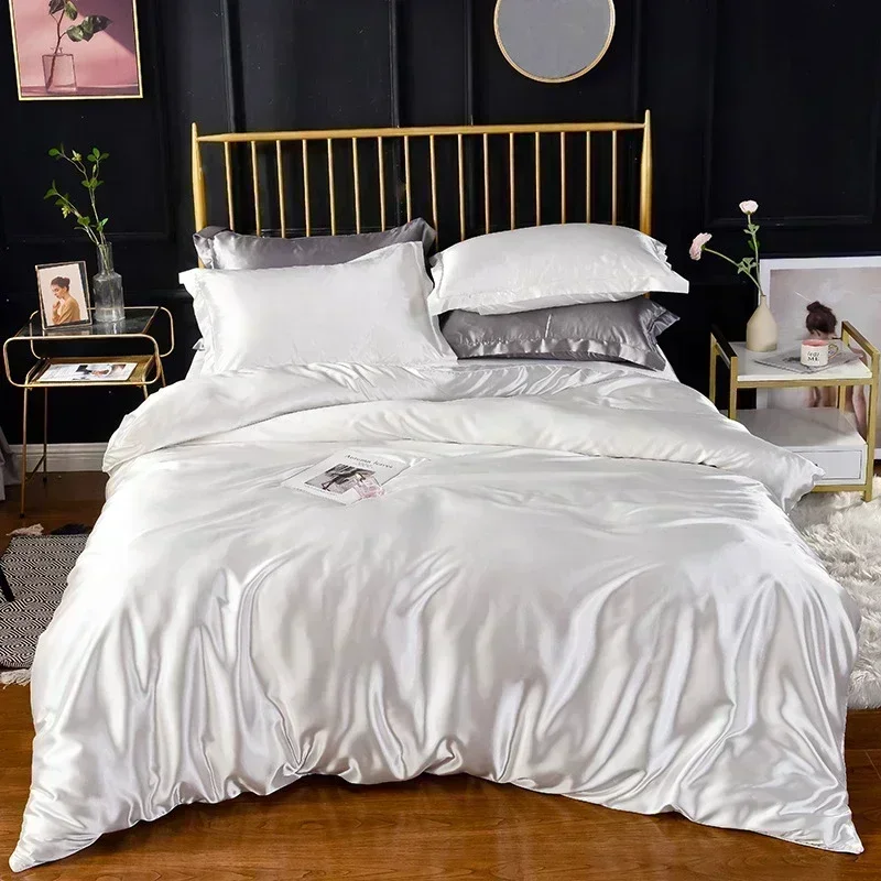 High End Queen Duvet Cover Set Silky Soft Cozy King Size Bedding Set Luxury Polyester Satin Smooth Single Double Bedding Sets