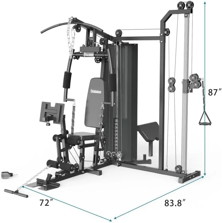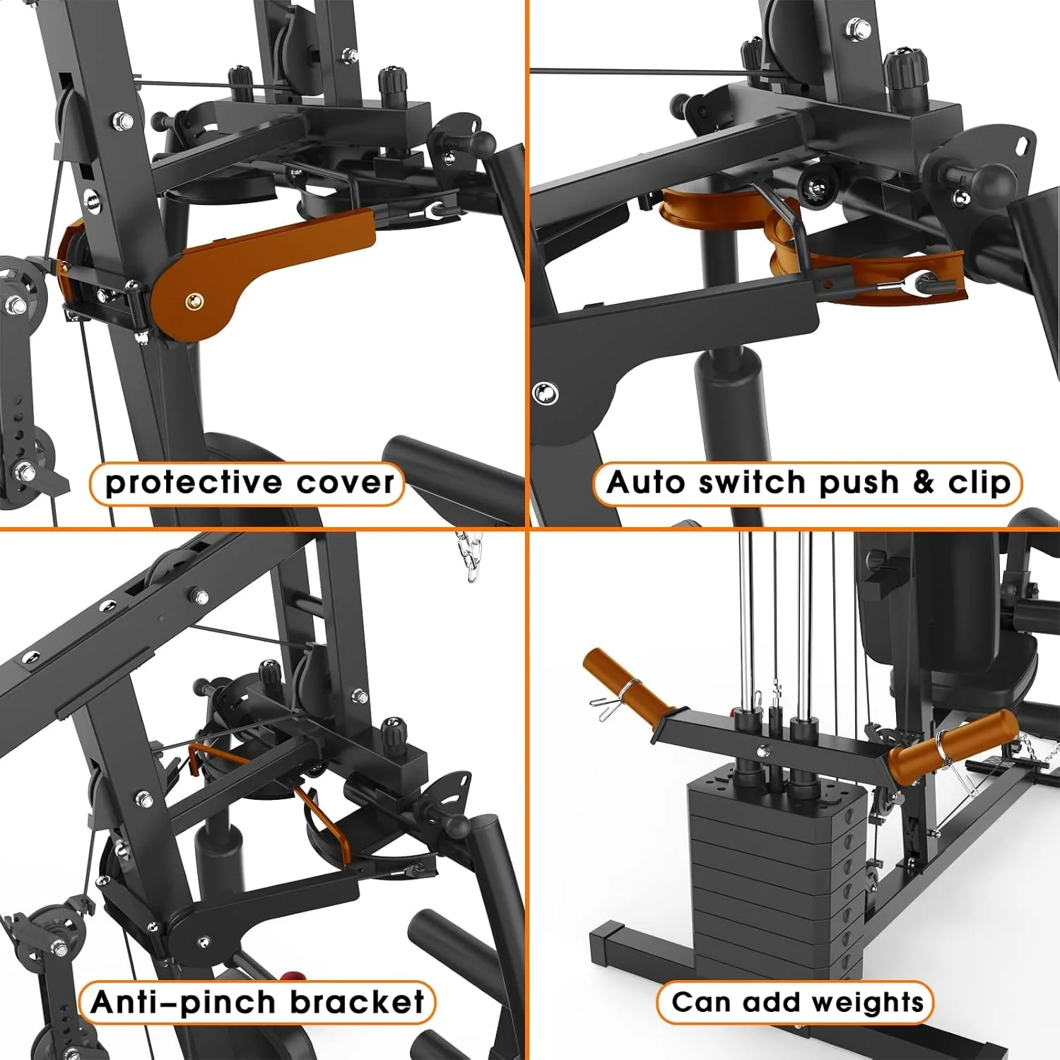 Included Components :Curl pad and Leg exercise pedal, Top and Bottom bars, One-hand bars*2 and Ankle straps, Quick release latch*4 and Chain, 148LB Weight Stack