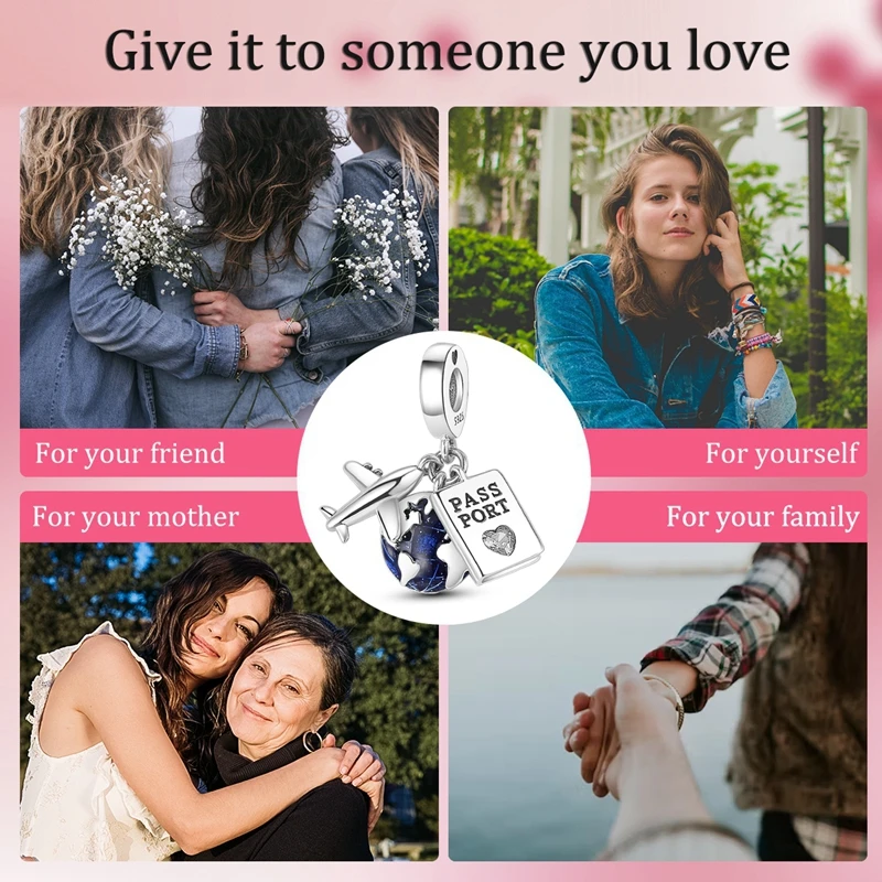 Hot Sale 925 Silver Airplane Passport Tree of Life Charms Beads Fit Original Bracelet Making For Woman Jewelry Fashion Pendant