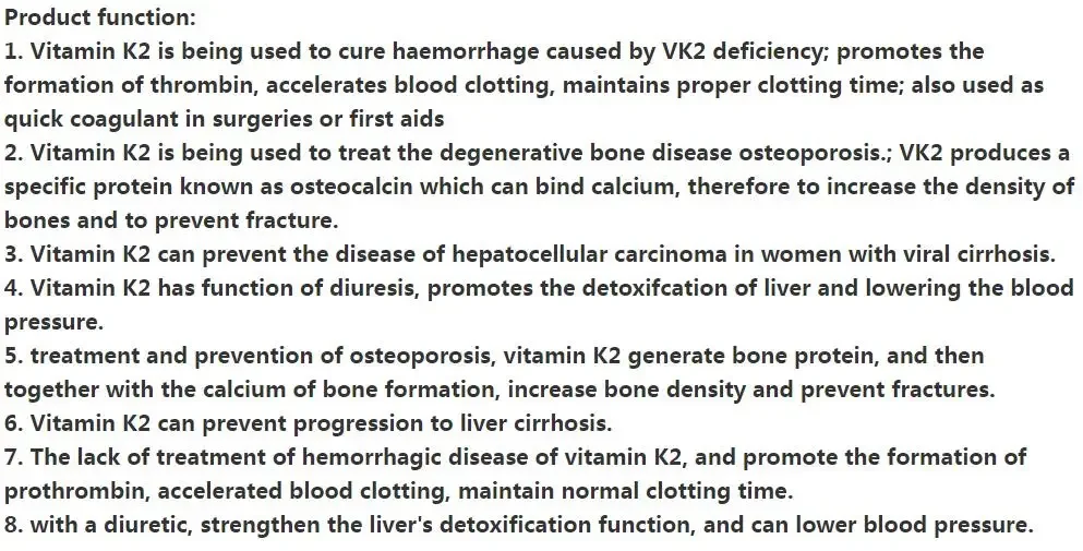 Home Store Vitamins and supplements Hot sale Cosmetic Raw Material Vitamin K2 Mk7 MENAQUINONE-7 supplement Detoxification of Liver free shipping