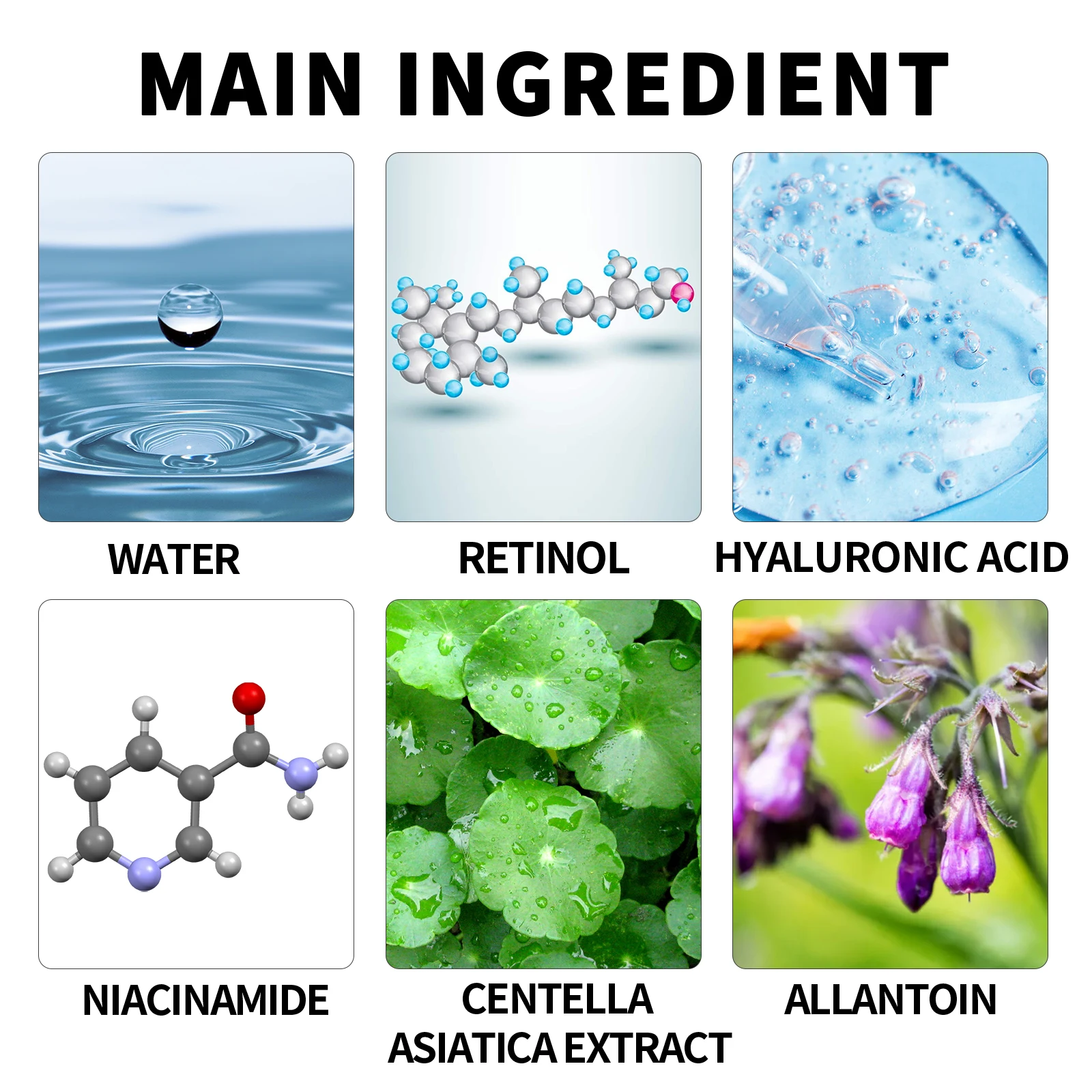 • Ingredient: Retinol, Hyaluronic Acid, Niacinamide