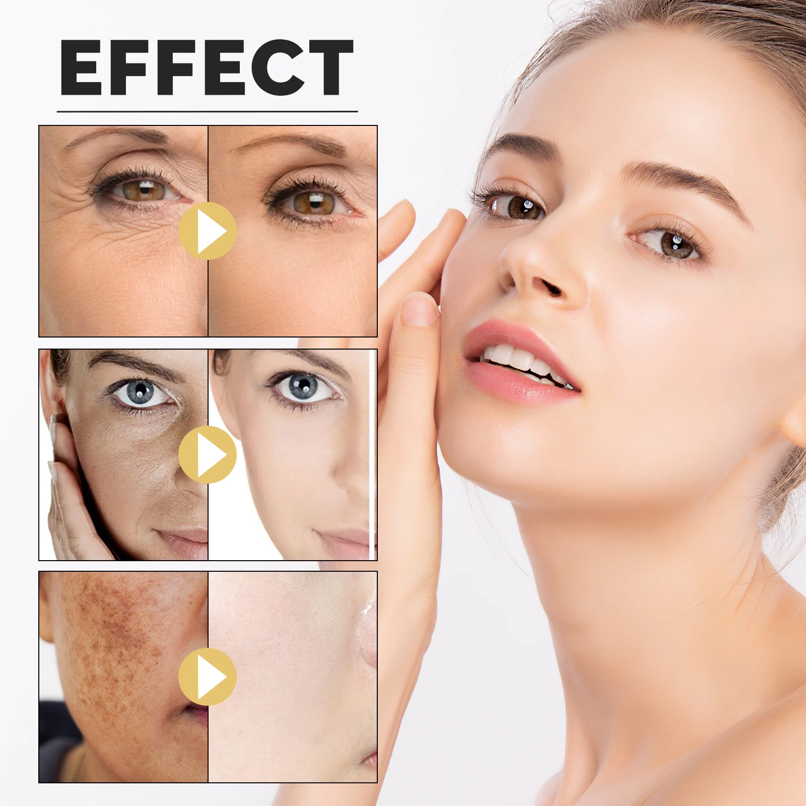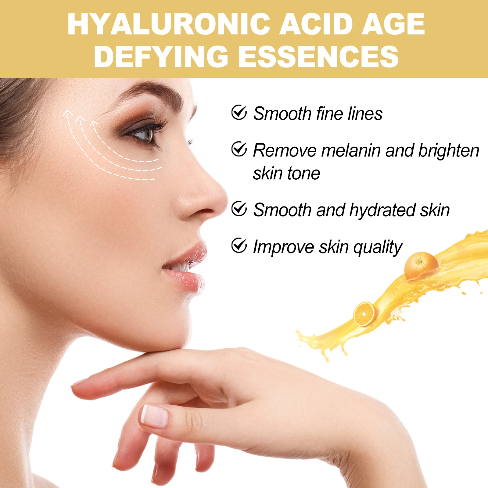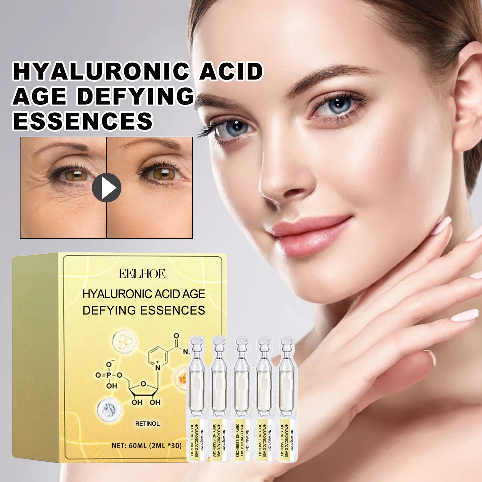 Our Hyaluronic Acid Firming Serum contains Retinol, Hyaluronic Acid, Niacinamide. It can reduce the appearance of fine lines, wrinkles and age spots while locking in moisture to restore skin smoothness, firmness and smoothness. Its use is simple: after cleansing and toning, take a tube of serum into the palm of your hand, apply evenly to the face, gently massage in circles until absorbed, use daily for better results. Smooth fine lines, remove melanin, brighten skin tone, make skin smooth and hydrated, and improve skin texture.