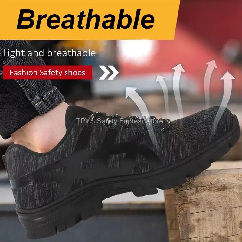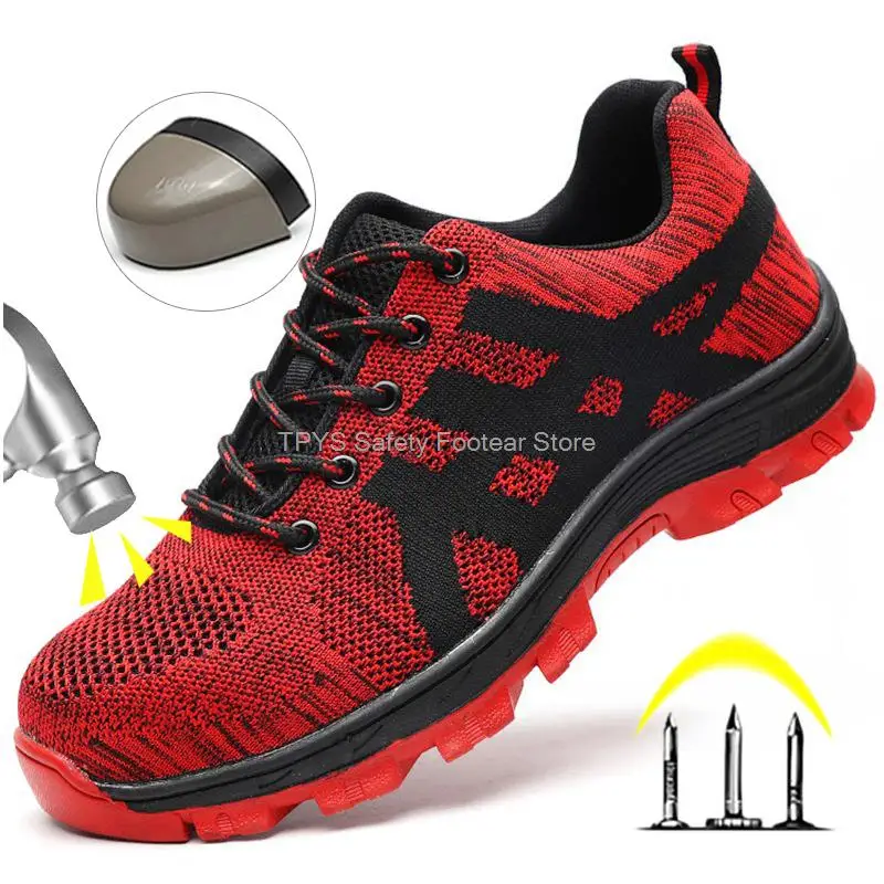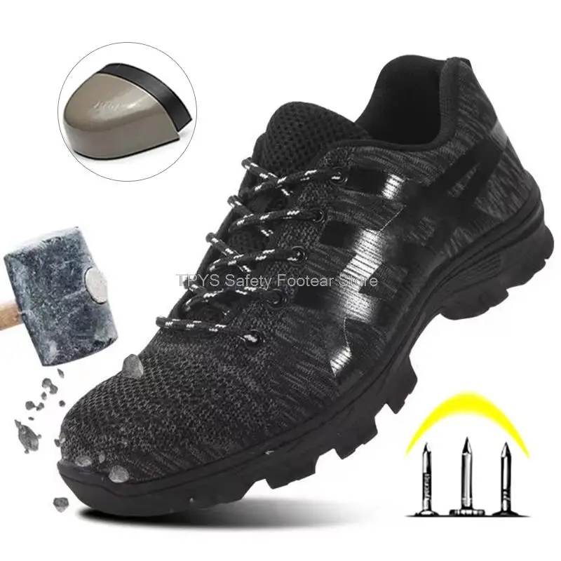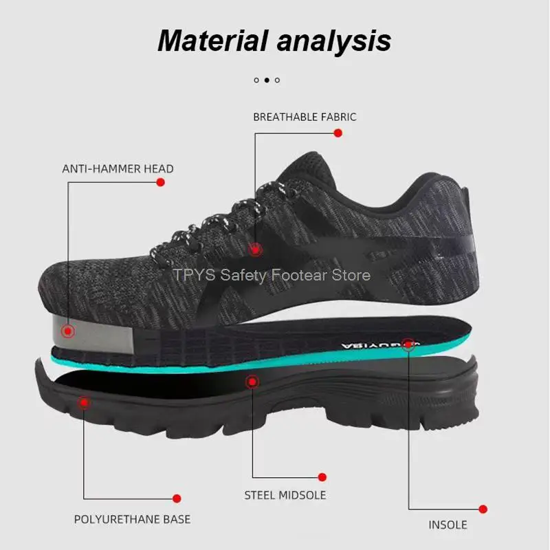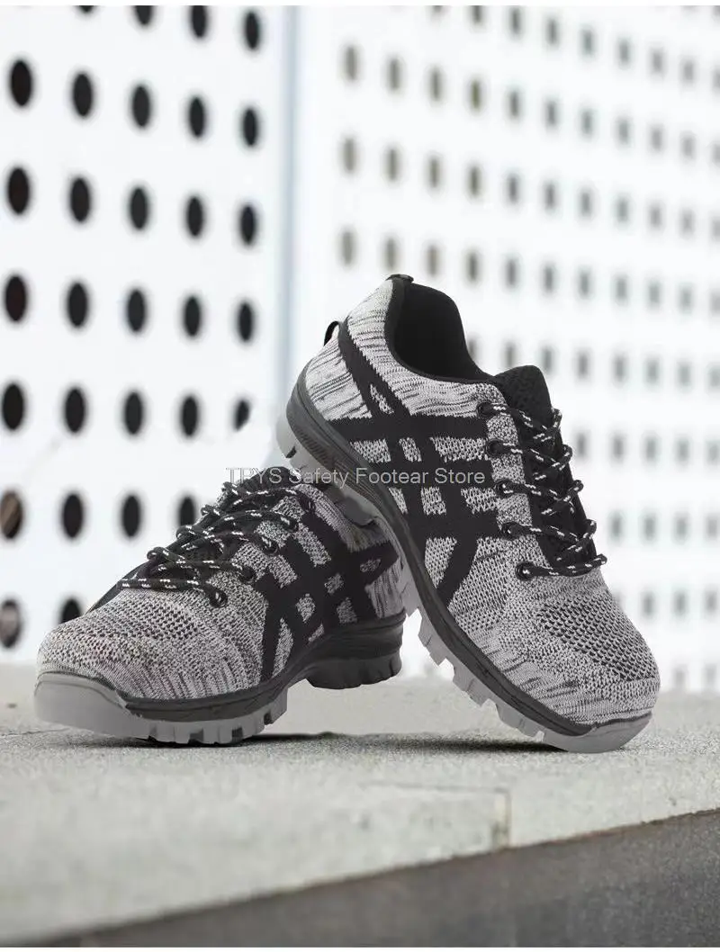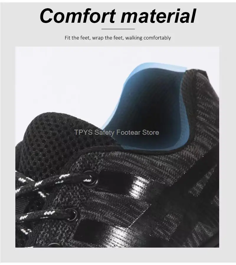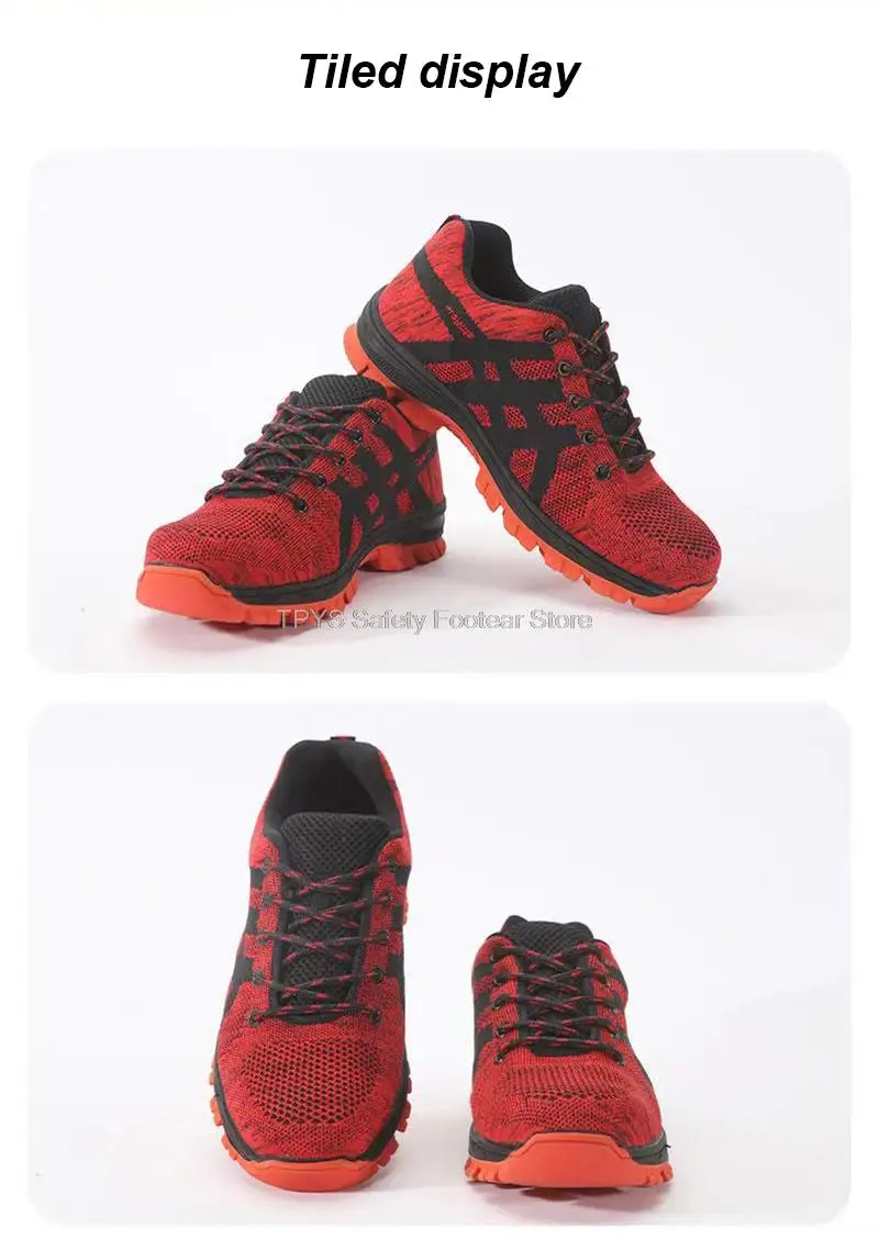 Super light safety shoe:It is like the weight of a pair of running shoes. They can help you to work happily all day without exhausting your feet. With super soft insoles and High elastic sole, your feet are safe and comfortable. Flying knit upper is very soft, Keep your feet comfortable and breathable.