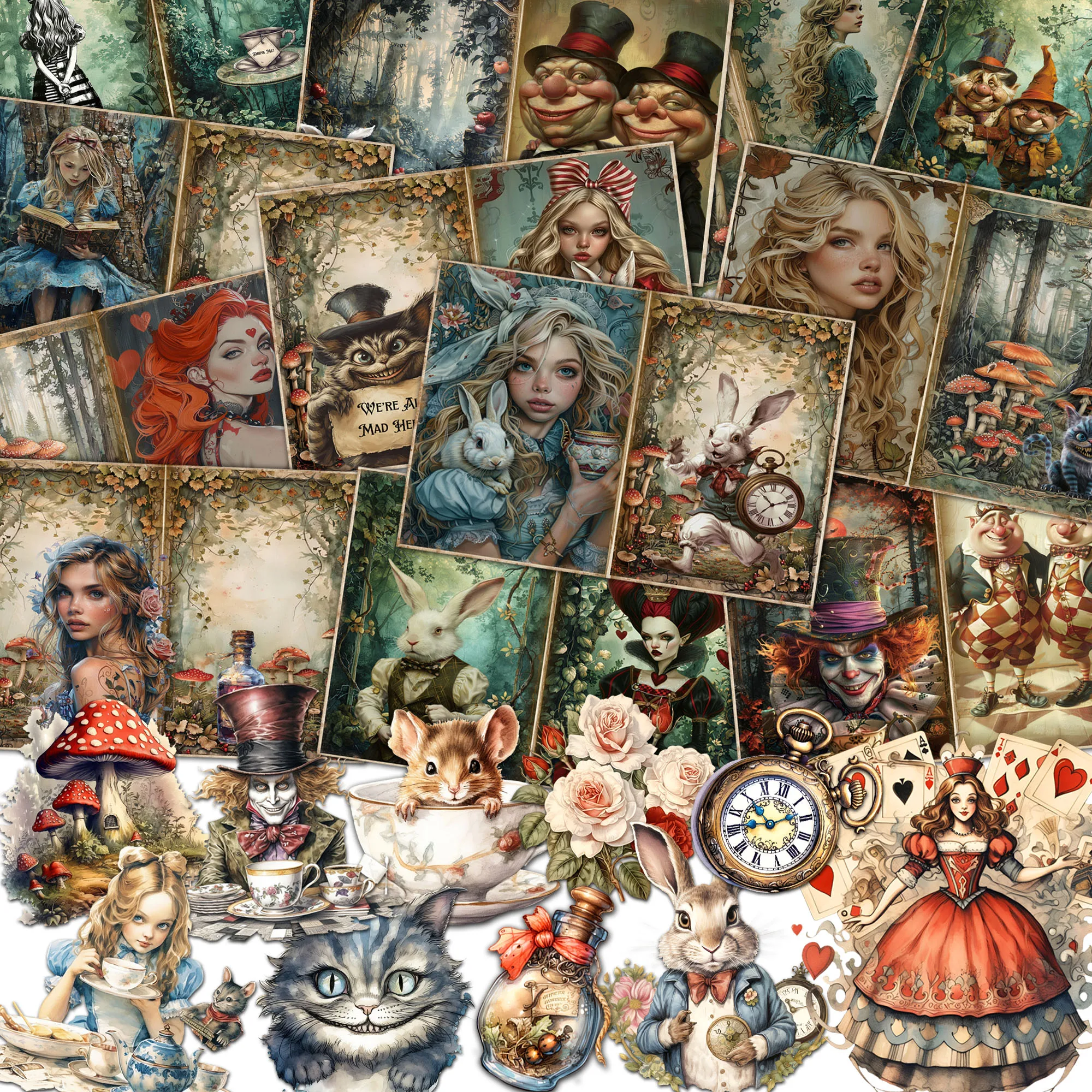 JAIIMAN54pieces Girl Wonderland DIY Decoration Junk Journal Kits,for Arts Crafts,Holiday Party,Scrapbooking Supplies,DIY Crafts