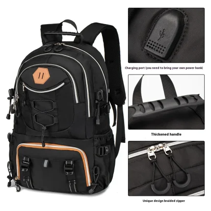 Backpack For Men And Women, Fashionable Black, Large Capacity, Anti-theft, Waterproof, And Durable Laptop Bag, USB Charging Port