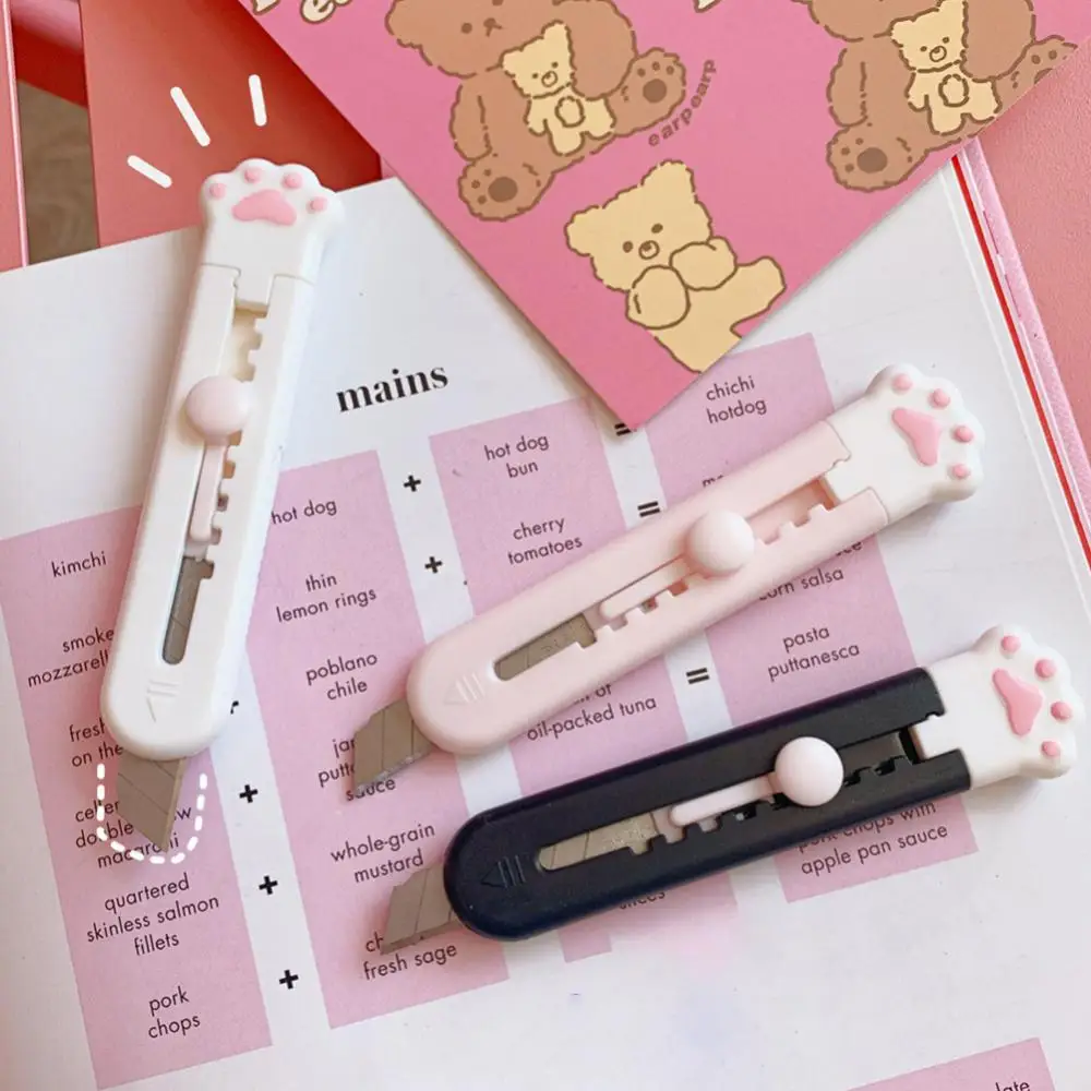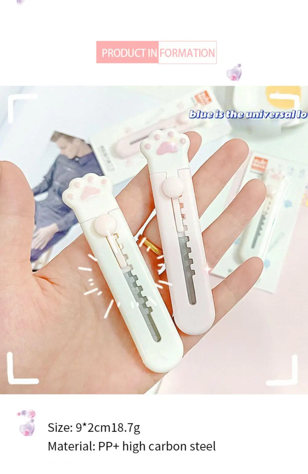 Kawaii Mini Pocket Cat Paw Art Utility Knife Express Box Knife Paper Cutter Craft Wrapping Refillable Blade Stationery Big sale