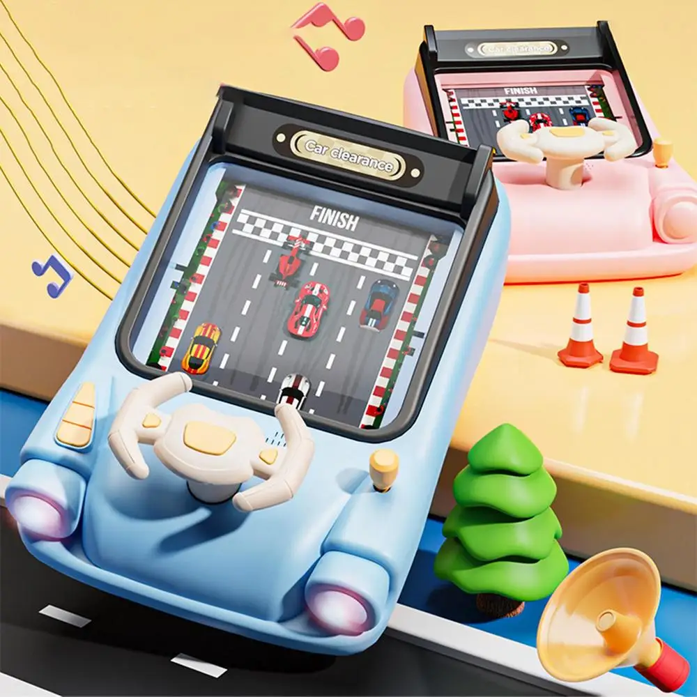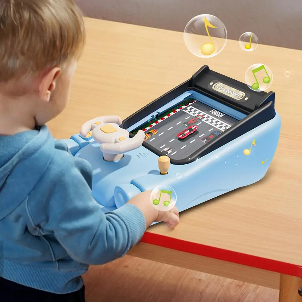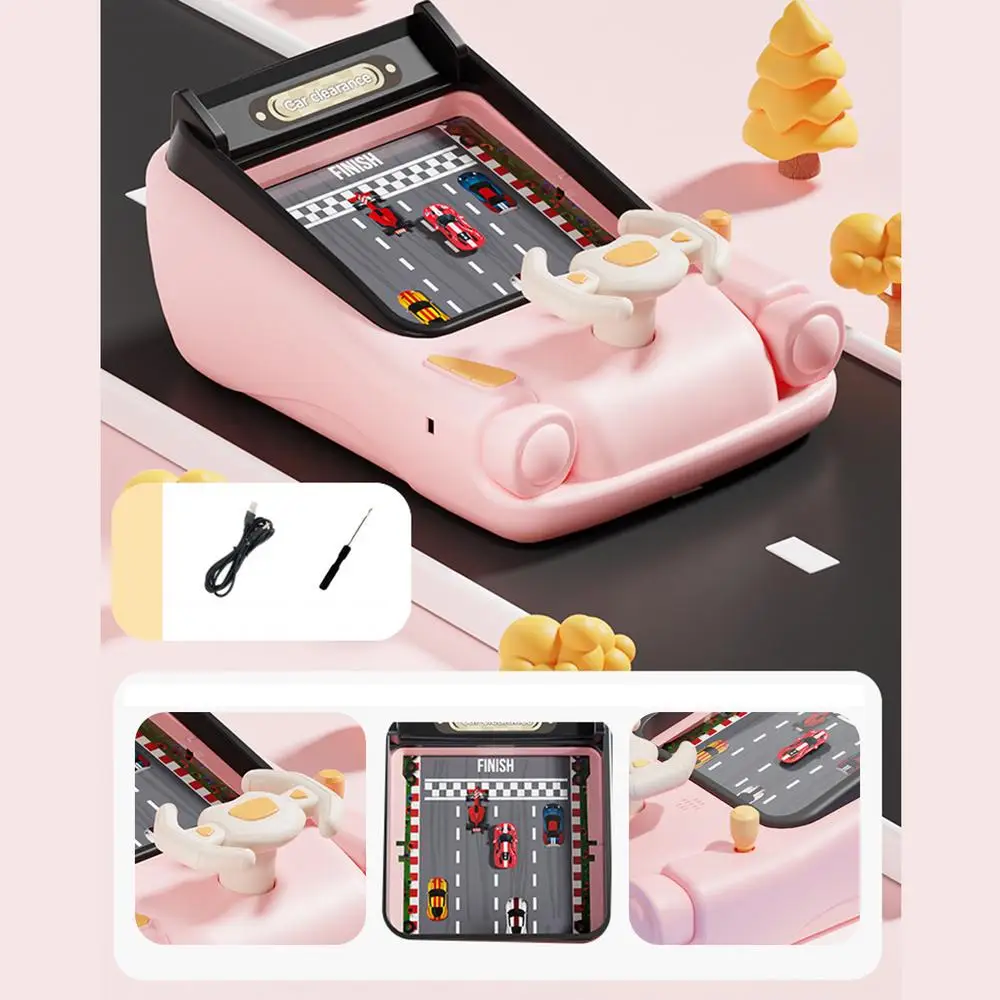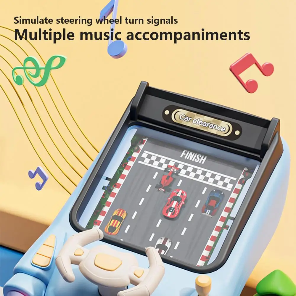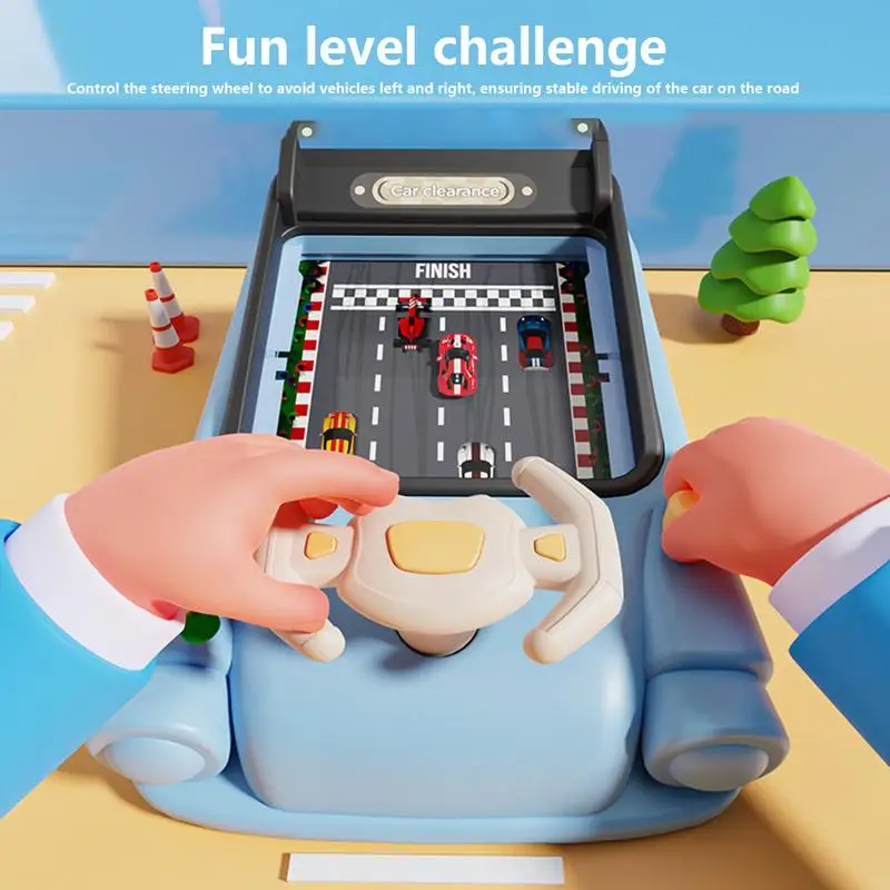 3.Racing Adventure: Challenge yourself with this realistic game console that simulates a thrilling driving experience. The game restarts if a collision occurs, so you have to maneuver the steering wheel to avoid vehicles and reach the finish line.