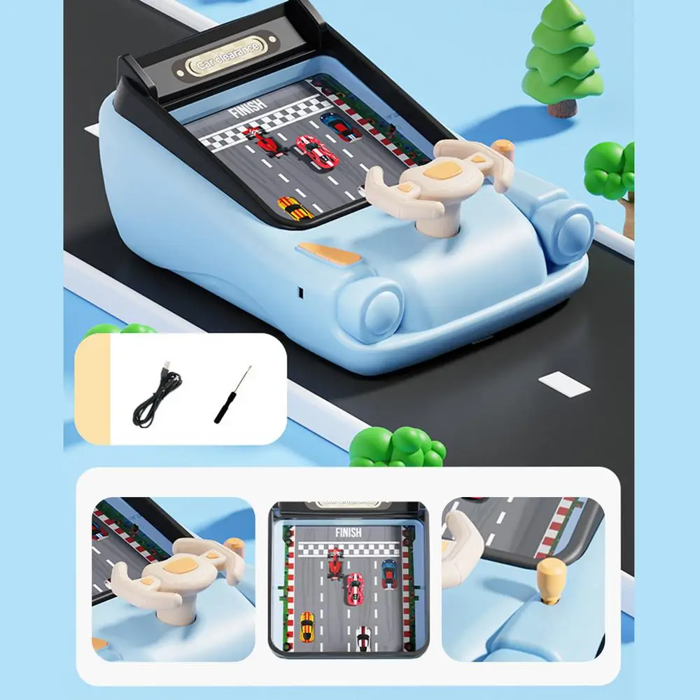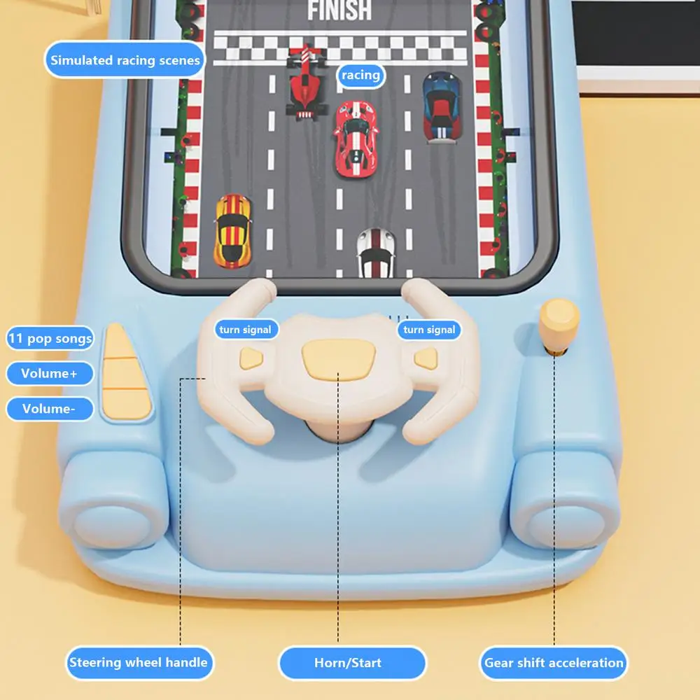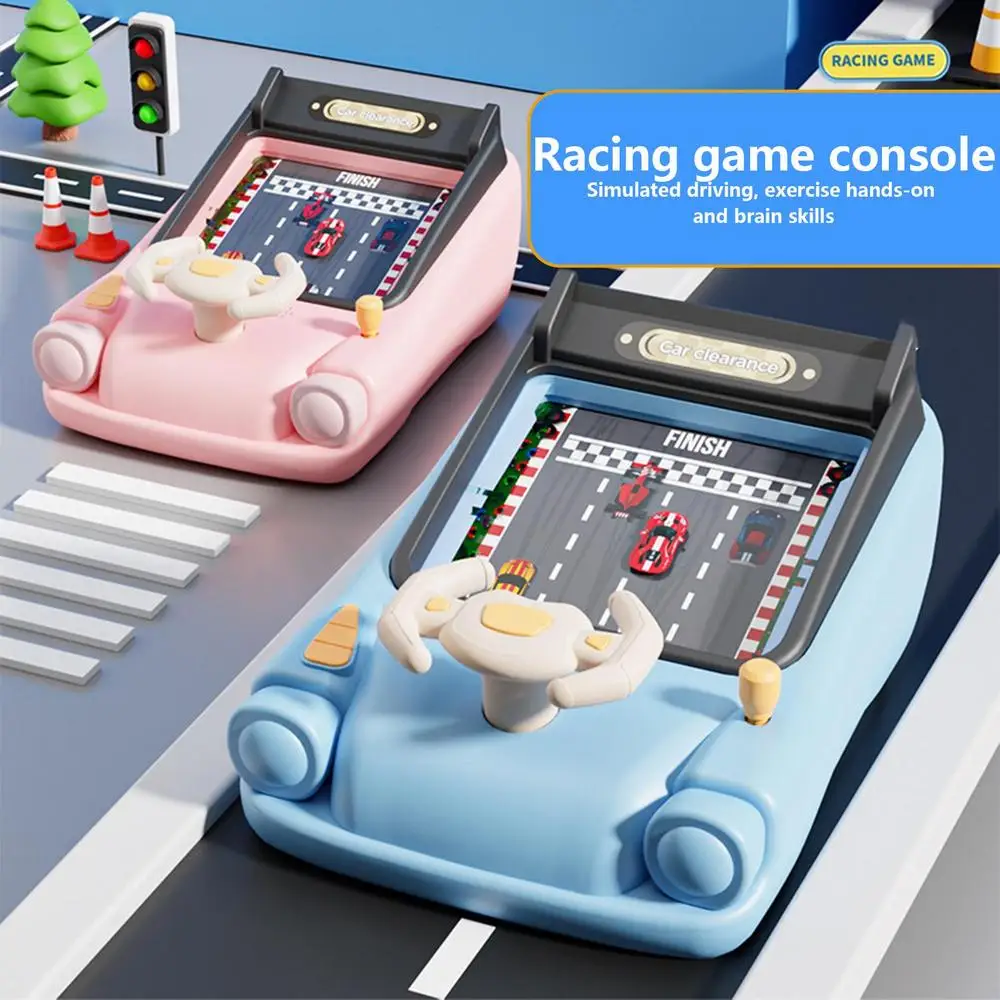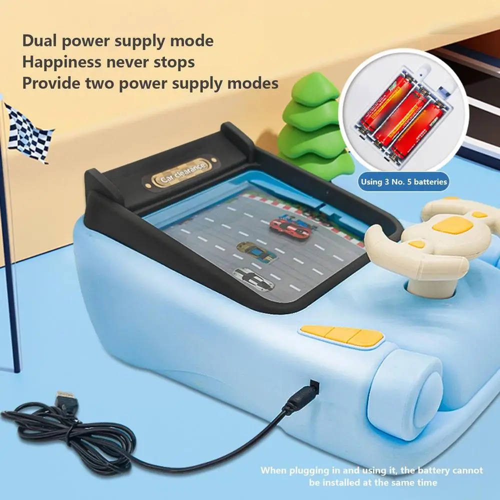 3.Racing Adventure: Challenge yourself with this realistic game console that simulates a thrilling driving experience. The game restarts if a collision occurs, so you have to maneuver the steering wheel to avoid vehicles and reach the finish line.