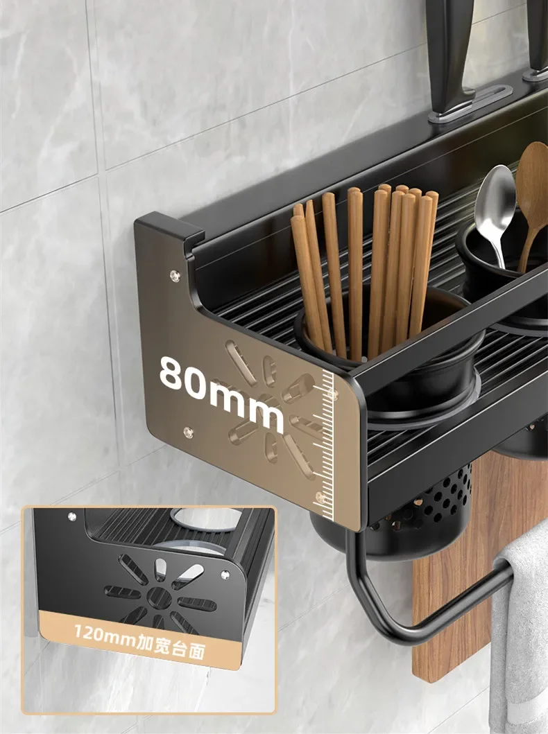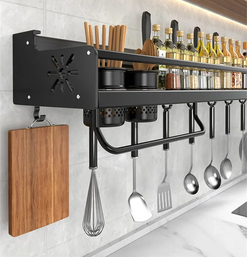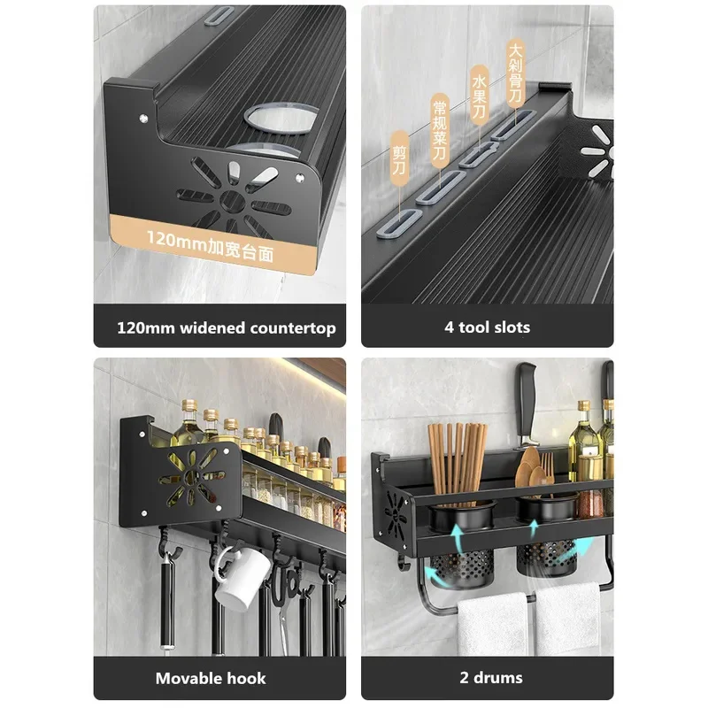 Kitchen Organizer Shelf Wall-mounted Spice Storage Rack Kitchen Knife Holder Wall Seasoning Chopstick Spoon Shovel Storage Sheif