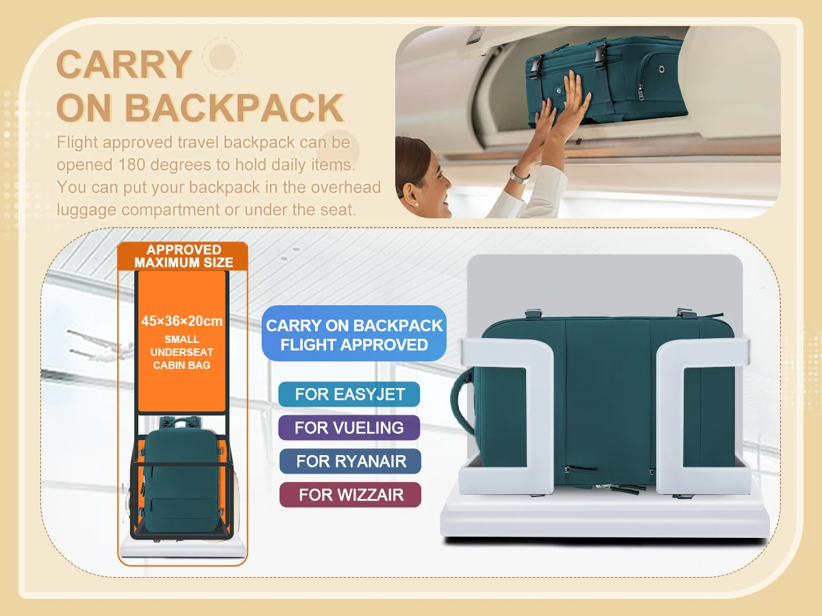 Women’s Cabin Travel Backpack Laptop Bag Large Capacity Easyjet Carry-Ons 45x36x20 Backpack Ryanair 40x20x25 Water Resistant Bag