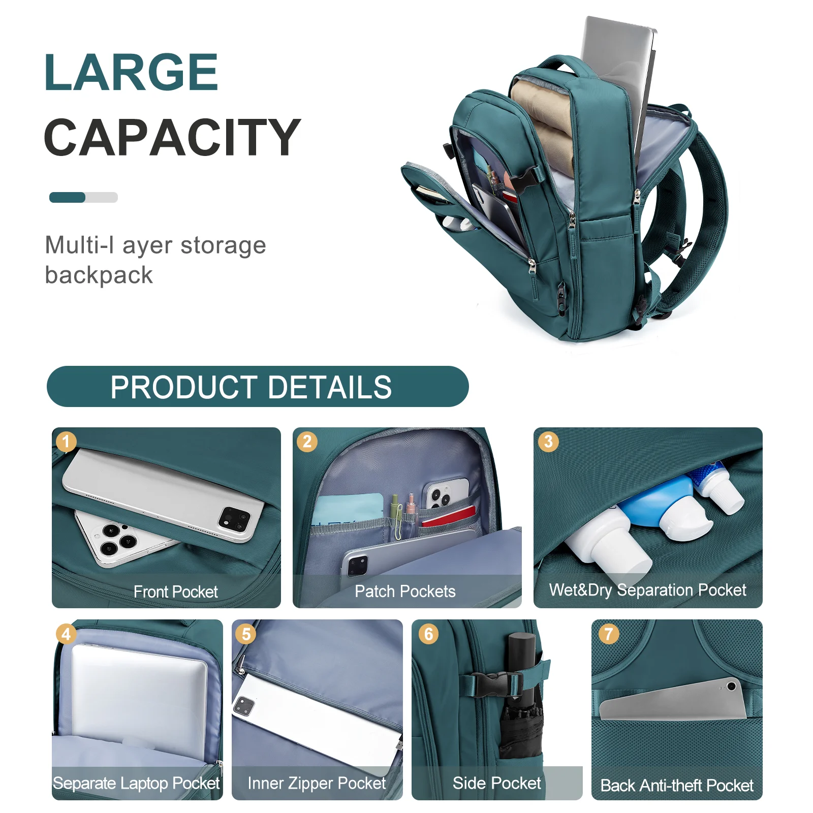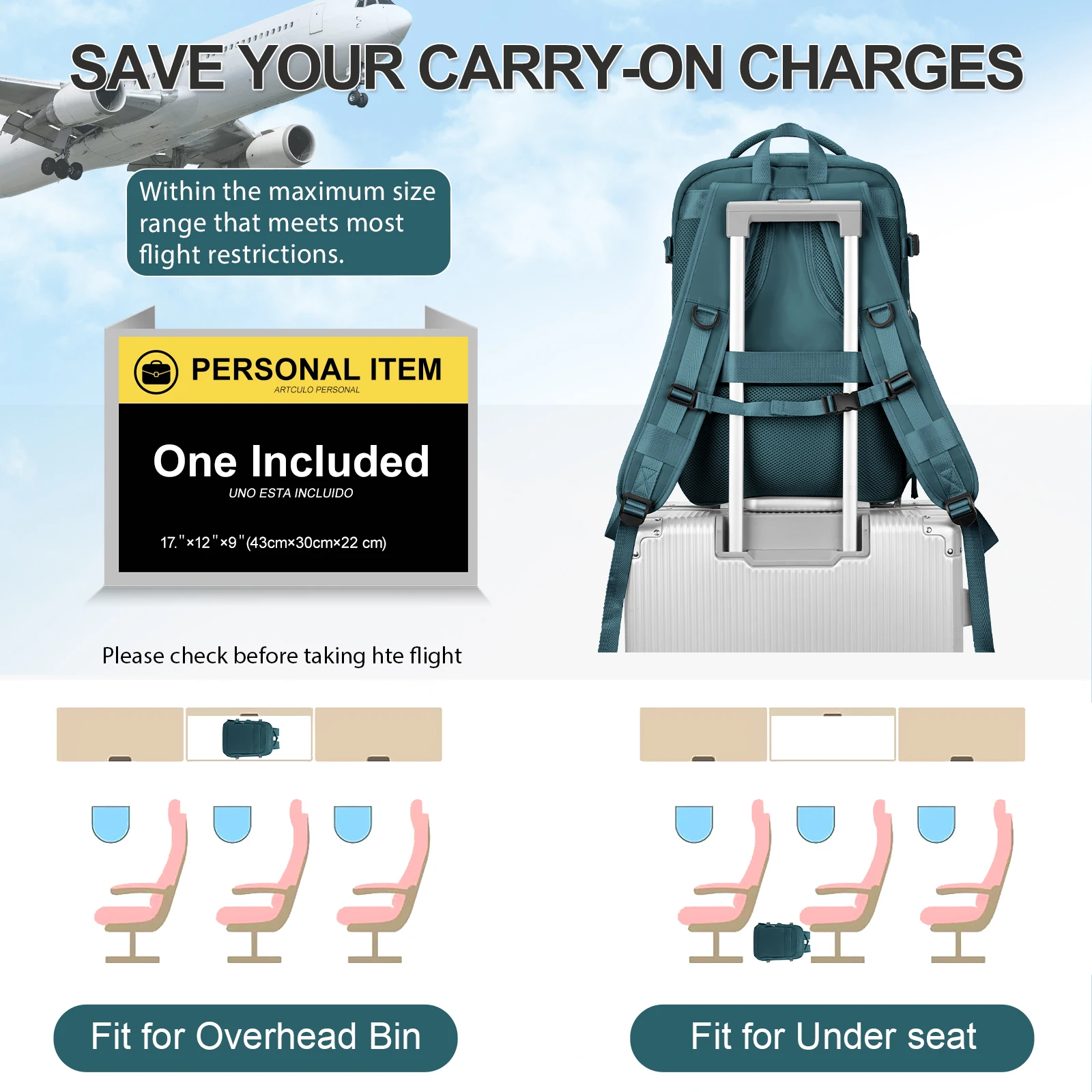Large Travel Backpack Women Carry on Backpack, Airline Approved Personal Item Bag, Airplane Backpack, Hiking Short-Trip Rucksack