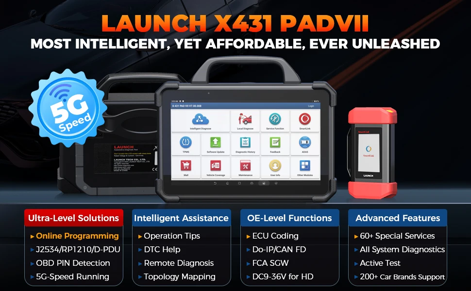 This diagnostic tool comes with SmartLink CVCI box as a pass-through tool to connect with OEM software for effective J2534 ECU programming, to replace the existing software/firmware in the ECU, program new ECUs, and fix software-controlled driving performance and emission issues. ECU Coding for Component Matching after replacement, or re-flashing modules to active features / deactivate hidden features, without use of often very expensive factory automotive scan tools.
