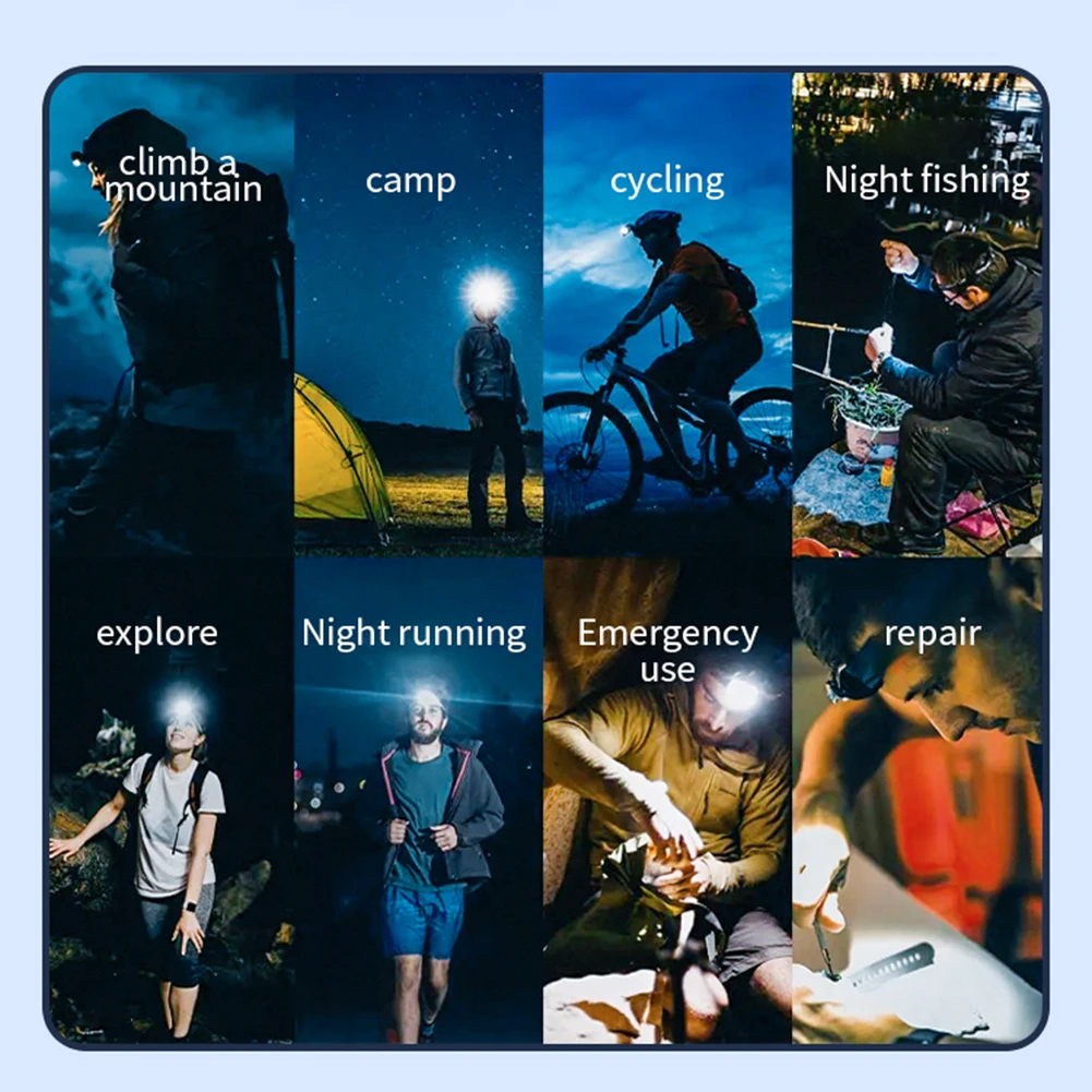 5.Tiltable Light Beam: With an adjustable lighting angle, this LED camping head light can be tilted to direct the beam precisely where you need it, enhancing functionality and user experience.